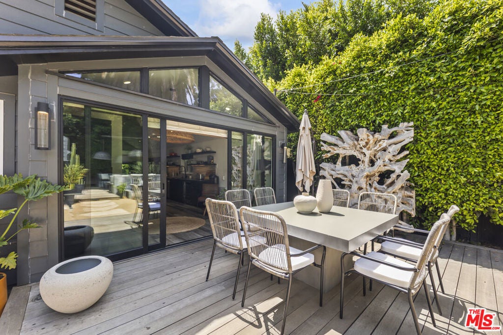 Effortlessly cool and design-driven, this quiet Modern Craftsman offers a rare opportunity in a highly walkable West Hollywood location just moments from top dining, cafes, boutiques, and creative hotspots. The sellers are extremely motivated and ready to make a deal, creating exceptional value for buyers seeking style and urgency in one offering. The 2-bedroom, 2-bathroom main house features vaulted ceilings, exposed wood beams, and abundant natural light that enhances its elevated boho-chic aesthetic. Expansive glass doors open to a private deck and lush outdoor spaces, delivering seamless indoor-outdoor living ideal for both relaxation and entertaining. A fully permitted detached 1-bedroom, 1-bathroom ADU with private entrance adds versatility, perfect for guests, a studio, or income potential. This property is also an excellent option for a turnkey 1031 exchange, combining flexibility with strong investment appeal. Adding even more value, the sellers are willing to include select high-end designer furniture, offering a truly move-in-ready experience. With a compelling price and VERY MOTIVATED SELLERS prepared to act quickly, this is a standout opportunity!
