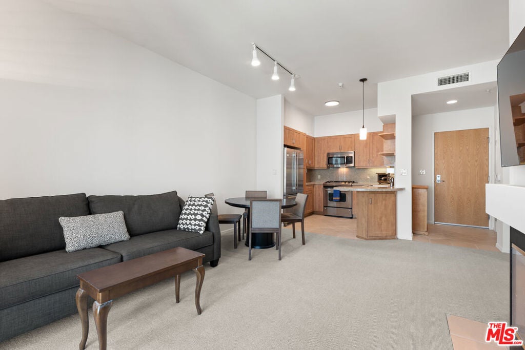 Teramachi is a senior (55+ years) condominium complex in the heart of DTLA's historic Little Tokyo. Offered is a top floor unit with 2 bedrooms, including Primary Suite with walk-in closet, and 2 full bathrooms. Living room with fireplace and balcony with city views, dining area and gourmet kitchen with granite counter tops, breakfast bar & stainless steel appliances. High ceilings, new paint, new window coverings, central air & heat, in-unit washer & dryer and one assigned parking space. Teramachi amenities include central courtyard with koi pond, fitness center, guest lounges, 2-story community room, community barbecues, guest parking and 24 hour front desk/security station. Close to Little Tokyo shops & restaurants, Arts District, Grand Central Market, Union Station, Dodger Stadium, Dorothy Chandler Pavilion & Disney Hall. Welcome Home!
