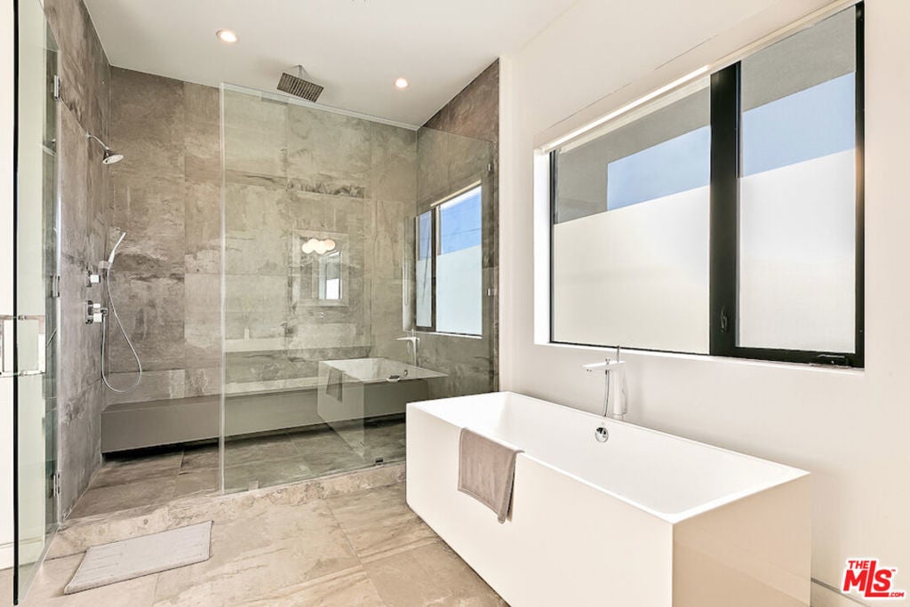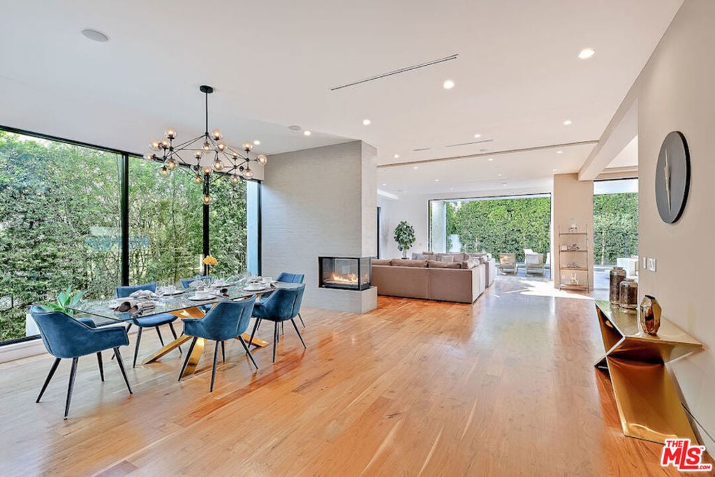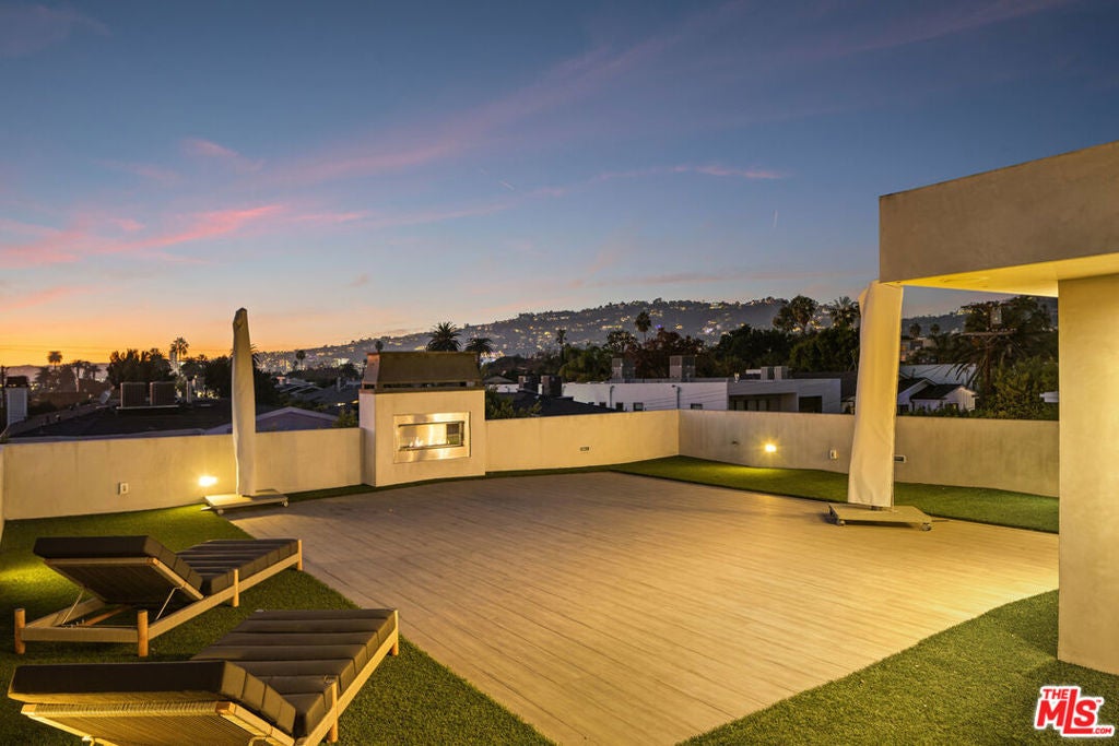 Stunning luxury villa located in the heart of West Hollywood between Melrose & Santa Monica Blvd. The new modern house is a hidden beauty for guests & families who seek absolute privacy while being close to all attractions. High-end finishes & technology including a Smart Home System & security cameras. Spectacular sunset views of LA & Hollywood Hills from the 1,600 sqft roof top deck w/ a fireplace. Gated & hedged for complete privacy in an elegant neighborhood with beautiful tree lines. Offering a modern private salt water heated pool & spa. 5 bedrooms, 6 baths w/ warm walnut floors. Spacious bedrooms w/ balconies, walk-in closets & walk-in showers. Gated entry leads to the open and airy atrium courtyard which opens to spacious living room of sheer elegance & impeccable architectural details. 16 ft ceilings offer great open floor plan w/ a large dining area. Fully-equipped kitchen appointed with stainless steel appliances, a five-burner stove and hood.