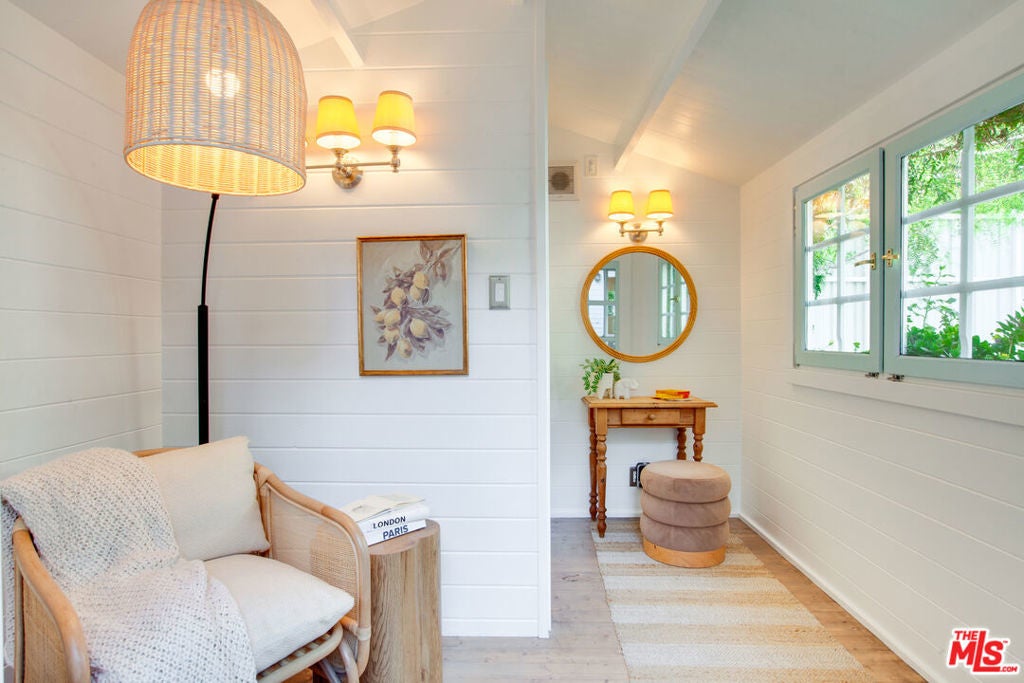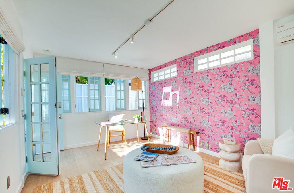 Private Venice retreat with lovely gardens, ideally located on the 700 block of Superba. Abundant natural light streams through the 2-bedroom plus office or artist's studio home that features a fireplace and wide plank hardwood floors in the living room. The kitchen and dining area have designer tile floors, Viking and Fisher Paykel appliances, designer cabinets and hardware plus a large walk-in pantry just off the kitchen with ample built-in shelving and washer/dryer. Continuing through the home, you'll find the 2nd bedroom located at the front of the house with built-in closets and shelves. The bathroom is spacious and luxuriously appointed, featuring a soaking tub, walk-in shower and heated towel bar for added comfort. The primary bedroom boasts a large walk-in closet and elegant French doors that open to the back garden. Step outside into the lush, private backyard, where you'll be greeted by an abundance of fragrant flowers every spring. The outdoor space is perfect for entertaining year-round, offering an alfresco dining area and a covered sitting area complete with a cement fire feature coffee table. Tucked away at the back of the property is an artist's studio, office or meditation room, where light streams in through 2 walls of windows. A second structure features a small lounge/reading room and a half bath. There is remote controlled gated parking at the back of the property. The residence is a true Venice treasure, situated in the walk-street area, 2 blocks from Abbot Kinney, minutes from the beach and close to all that Venice has to offer.