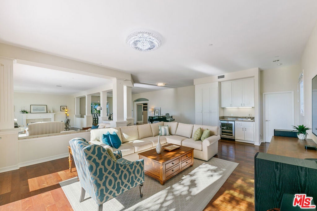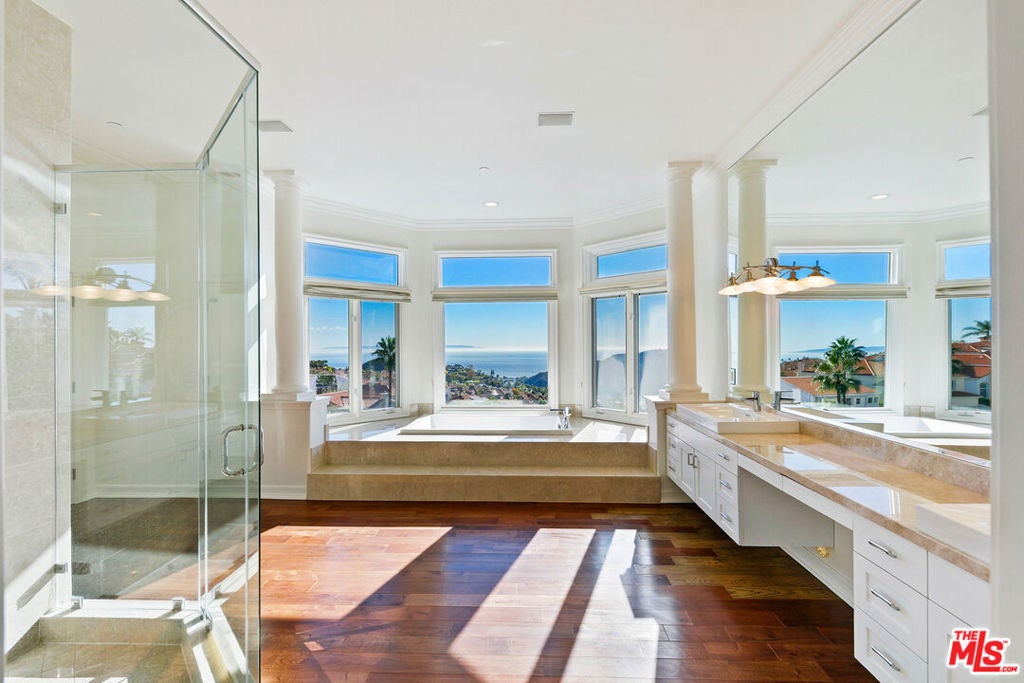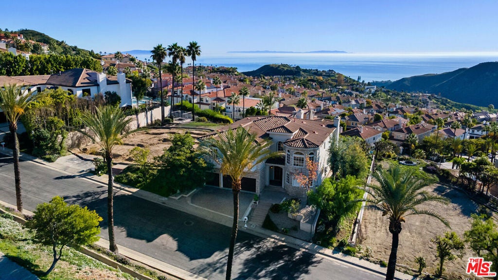 This is an exceptional opportunity to own one of the most sought-after open floorplans with head-on ocean, Catalina, and mountain views in the prestigious guard-gated Enclave community of the Palisades Highlands. A pair of double doors opens to a dramatic two-story marble entry, setting the tone for the light-filled interiors beyond. The grand living spaces offer flexible layout that currently accommodates a formal dining room, music room, sunken living room with fireplace, and a family room with a wet bar. They are framed by walls of picture windows and French doors, capturing sweeping views and bathing the home in natural light. The French doors open to a landscaped backyard with a covered patio and a raised sun deck with outdoor kitchen area, creating a seamless indoor/outdoor flow and an inviting setting for gatherings or quiet enjoyment of the surroundings. The spacious kitchen features a center island, granite countertops, abundant cabinetry, and a breakfast area that opens to the dining room. A private bedroom suite tucked behind the bar area on the main floor is well suited for guests, extended family, or live-in assistant. Upstairs, the expansive primary suite offers breathtaking views from every window and includes a sitting area with fireplace, French doors to a large private balcony, a spa-like marble bathroom, and a custom walk-in closet. The second level also features an elegant wood-paneled library, two additional bedrooms with private balconies that share a bathroom, a third bedroom with an en-suite bath, and a spacious laundry room with sink and ample linen storage. There is a 3-car garage with direct access. The home was extensively remodeled in 2014. During the Palisades Fire, the neighboring properties on both sides were lost. This residence appears to have sustained some structural damage; Buyer to do their own due diligence as to the extent of such damage. Cracked and broken windowpanes have been repaired. The property presents a unique opportunity for a new owner to reimagine and restore the home to their own vision, creating a truly personalized private sanctuary with stunning views. Residents enjoy access to the resort-style Summit Club, featuring a fitness center, party room, heated lap pool and spa, tennis and pickleball courts, sports courts with basketball hoops, playground, and grassy park with walking trails. Additional access is provided to gated Highlands Park, which features a playground and dog park along Palisades Drive.