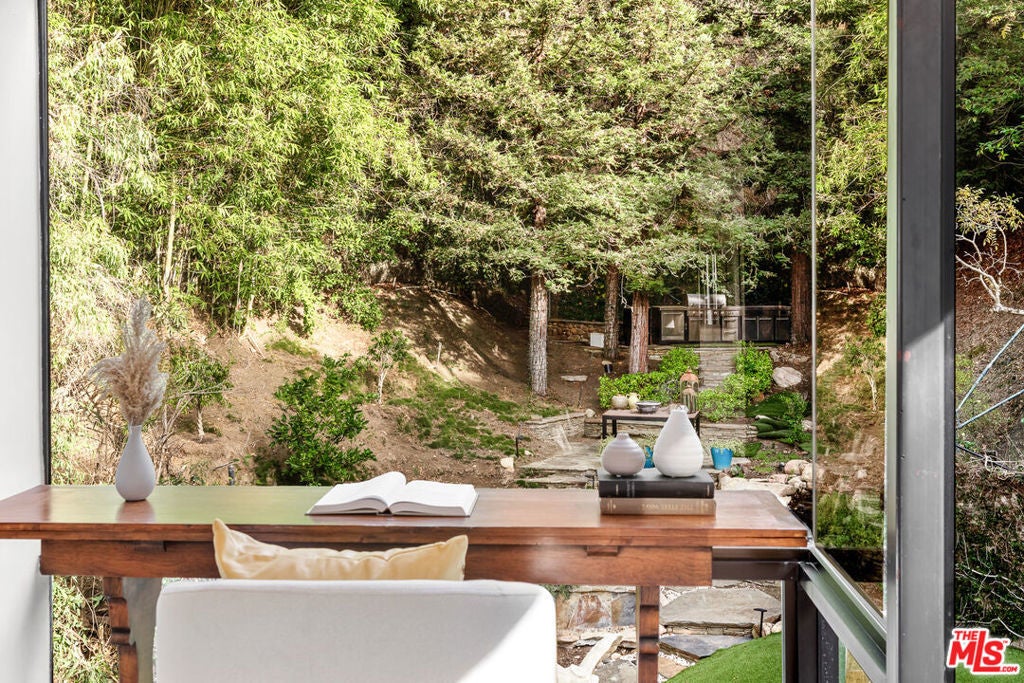 Relish ultimate privacy in this woodsy retreat hidden away from it all: Tucked behind gates and up a private, approximately 200-foot-long driveway rests this charming Benedict Canyon hideaway, positioned amidst mature trees and lush vegetation. Live a lifestyle in divine harmony with nature and views of verdant greenery from every room. Inside, wide-plank floors lead from each space to the next as large picture windows and walls of glass welcome natural light within. A greenhouse breakfast nook is adjacent to the remodeled kitchen, with its beautiful center island, dazzling backsplash, stainless-steel appliances, bright white cabinetry, and on-trend fixtures and finishes. The formal living room is centered by a decorative fireplace and offers wraparound views of the grounds and the surrounding hillside environment. The primary suite is a serene refuge and has a bathroom with dual-sink vanity and separate shower and jetted tub as well as a walk-in closet. Other bedrooms provide a unique, comfortable treehouse feel reminiscent of summer camps and family vacations. There is also a remodeled guest house with kitchenette, side patio, and bathroom. Numerous outdoor amenities include grassy lawns, rolling hills, meandering cobblestone pathways, a built-in barbecue, pool, spa, lounging decks, water features, and plenty of spaces to relax and dine al-fresco. Located within the attendance boundaries of the award-winning Warner Avenue Elementary School. Welcome home! Also available for lease.