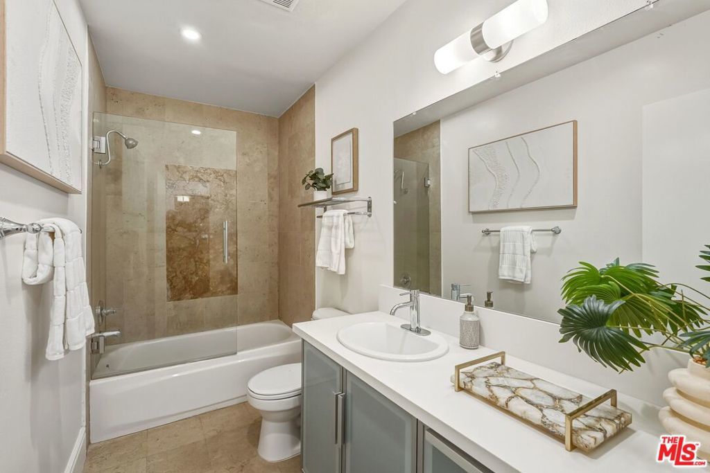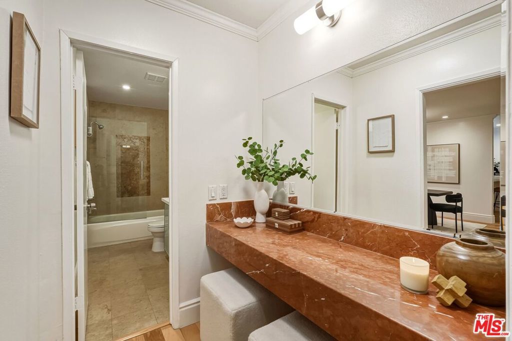 Ideally located just moments from UCLA, the Wilshire Corridor, Westwood Village, Century City, and Beverly Hills, this elegant first-floor 2-bedroom, 2-bath residence offers a refined lifestyle with unmatched convenience. A formal entry leads into a spacious living and dining area, ideal for both entertaining and everyday living, highlighted by a dramatic fireplace and expansive glass doors that open to a private, tranquil patio. The patio connects directly to both bedrooms, creating a rare sense of privacy and seamless indoor-outdoor flow. The kitchen features a breakfast bar and opens to the main living space, while both bedrooms include en-suite bathrooms. The primary suite offers generous storage, including a walk-in closet, making the home equally well-suited for those looking to live in a luxurious property in a great location, or as a long-term investment near campus. Residents enjoy a full suite of resort-style amenities, including a courtyard pool, fitness center, spa and sauna, and billiards room, along with two-car tandem parking and ample private storage. Community laundry is conveniently located just steps from the unit. An exceptional opportunity to own a sophisticated Westwood condo offering comfort, privacy, and proximity, ideal for discerning buyers seeking luxury living in a premier Westside location.