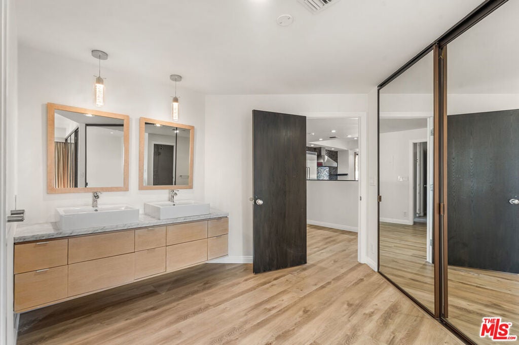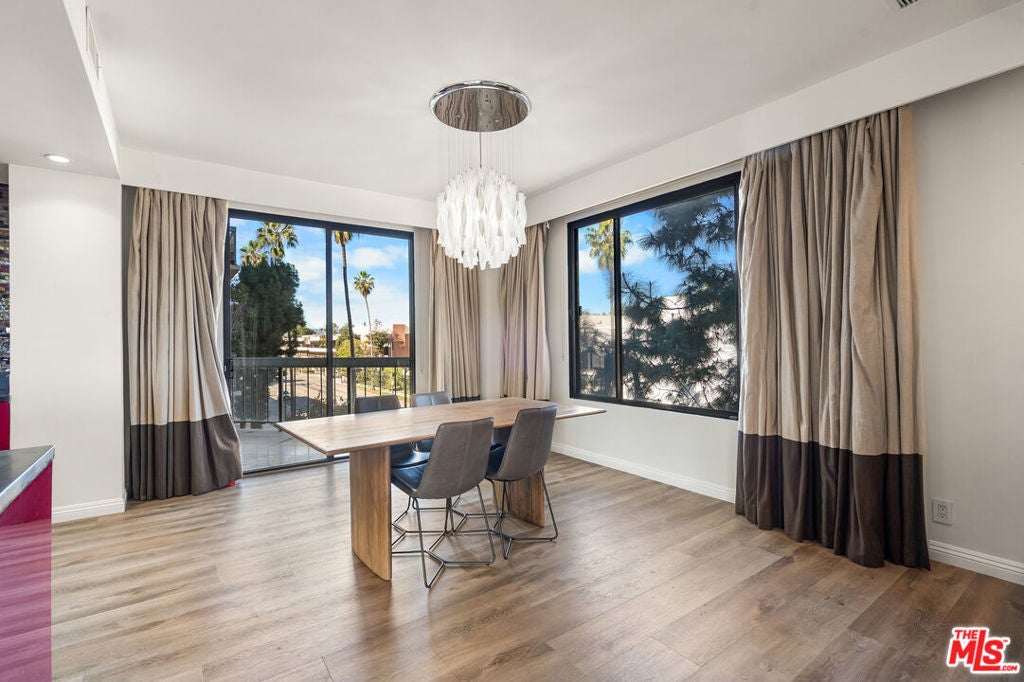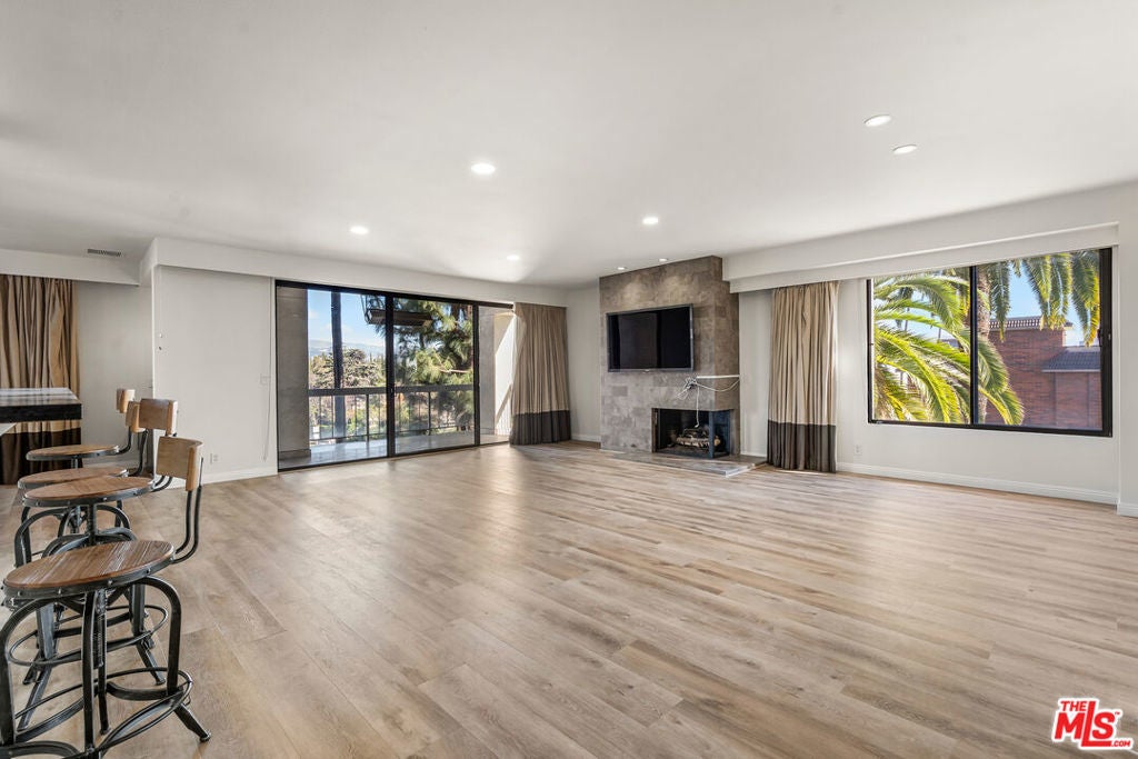 Spanning approximately 2,262 sq ft, this expansive 2-bedroom and 3-bath North-East corner residence offers refined living in the prestigious Wilshire Fremont Condominium, located in the heart of Hancock Park. Set within a solid concrete building, the home features soaring ceilings and an open, light-filled floor plan that provides a quiet and serene living environment. The chef's kitchen is equipped with Viking appliances, custom cabinetry, and an oversized marble island, seamlessly connecting to generous living and dining areas highlighted by a grand chandelier and elegant fireplace ideal for both entertaining and everyday comfort. Enjoy seamless indoor-outdoor living with multiple private balconies perfect for year-round use. Both bedrooms feature en-suite bathrooms, ample closet space, and access to private balconies with sweeping city, mountain, and Hollywood Sign views. The luxurious primary suite includes a spa-inspired bathroom retreat. Additional features include hardwood floors throughout, refined finishes, and a separate private storage room in the garage.Residents enjoy premium amenities including a pool, meeting room, and 24-hour on-site security. HOA dues cover water, trash, building maintenance, and more. Ideally situated on Wilshire Blvd, just minutes from Larchmont Village, The Grove, and Koreatown, this rare offering delivers exceptional space, timeless elegance, and an unbeatable central location.