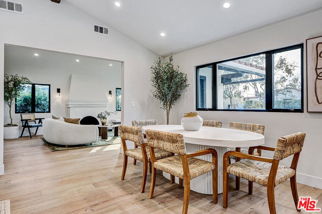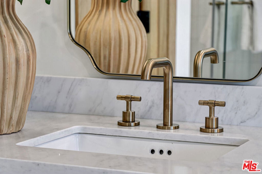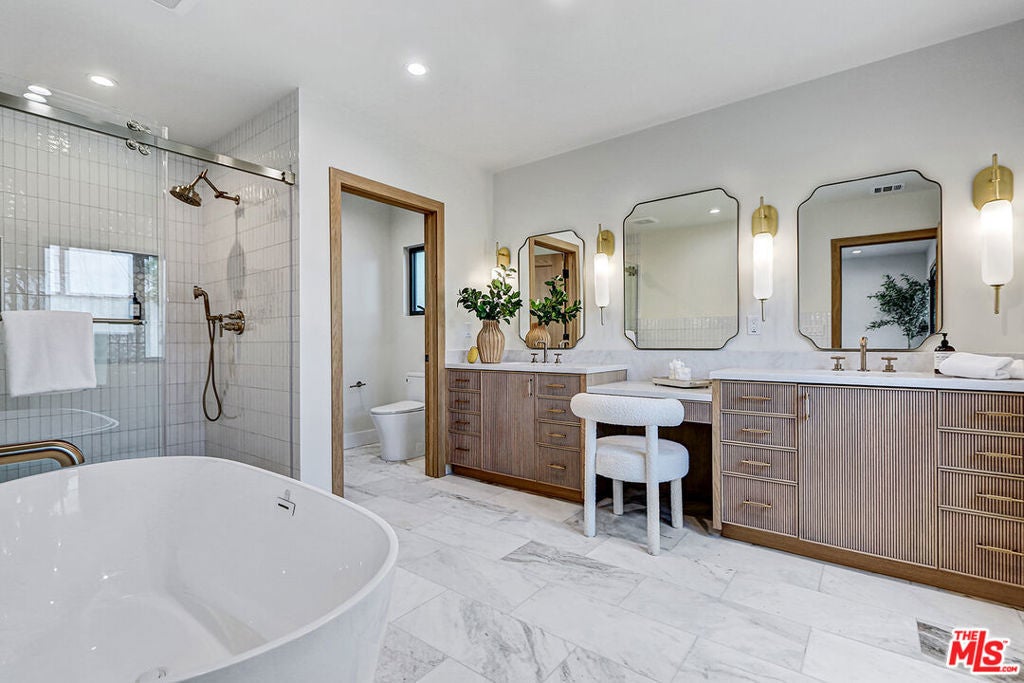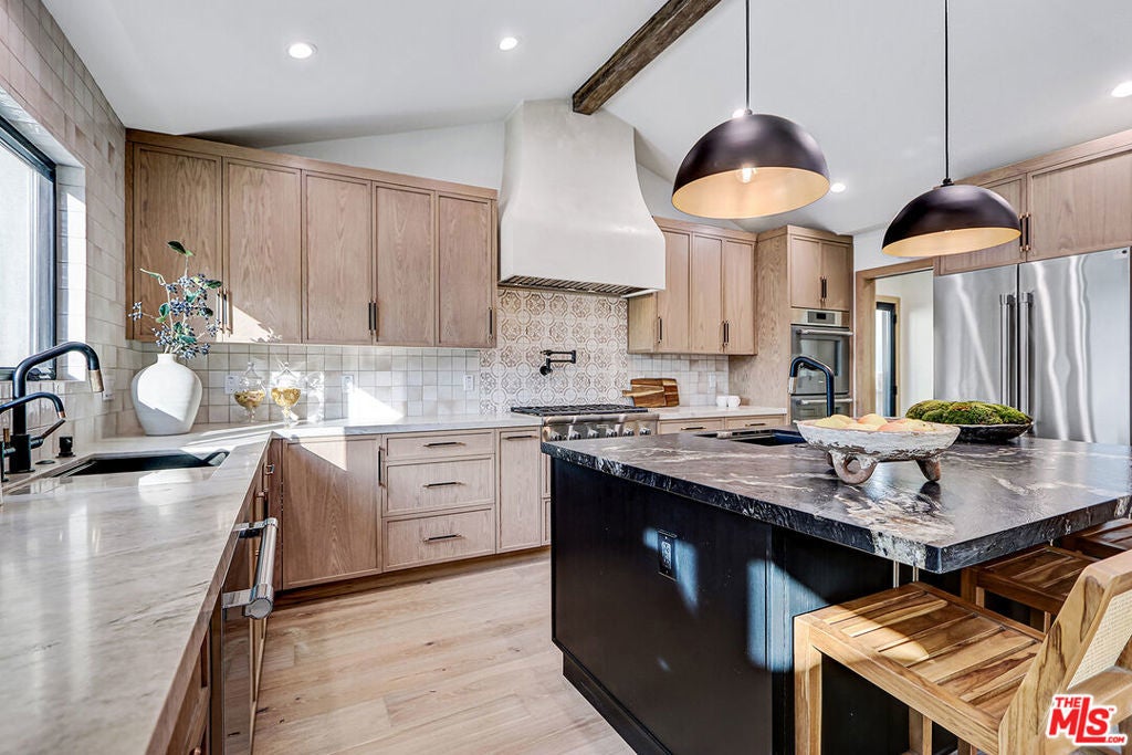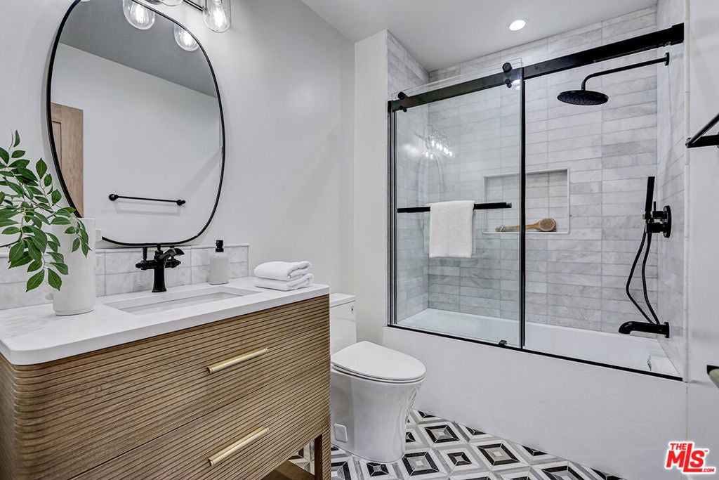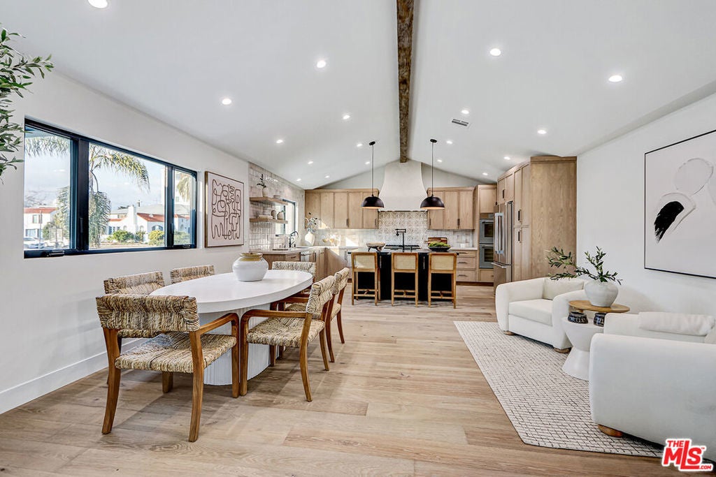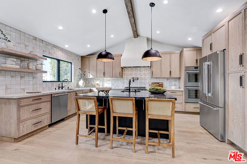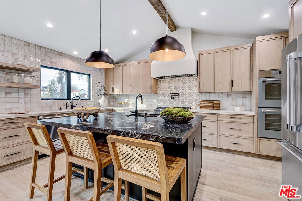 Extensively reimagined single-family residence with detached ADU, offering a flexible layout and cohesive design throughout. The home blends the feel of new construction with the character of an established neighborhood, featuring updated systems and refined finishes that create an easy transition for its next owner.A welcoming living room with fireplace opens into the main living areas, while a front enclosed patio adds additional usable space. Interior finishes include wood floors throughout, Milgard windows, pre-wiring for speakers, Ring doorbell, and security cameras.The kitchen is designed for everyday use and gathering, with a farmhouse aesthetic, breakfast bar, two sinks, six-burner cooktop with pot filler, farmhouse sink, Thermador double convection ovens with remote diagnostics and voice control, microwave, and Thermador French-door refrigerator.A dedicated laundry room includes a sink, built-in cabinetry, and space for a stackable washer/dryer.The primary suite offers generous proportions, a walk-in closet, an oversized shower with rain head, standalone soaking tub, and double vanity with seated vanity area.Outdoor spaces include rear deck suitable for dining or relaxing, herb garden, orange trees and full grass yard.The detached ADU provides additional flexibility with a custom walk-in closet, sliding doors with side patio access, Frigidaire appliances, and a bathroom with tub/shower combination.Offered as-is.