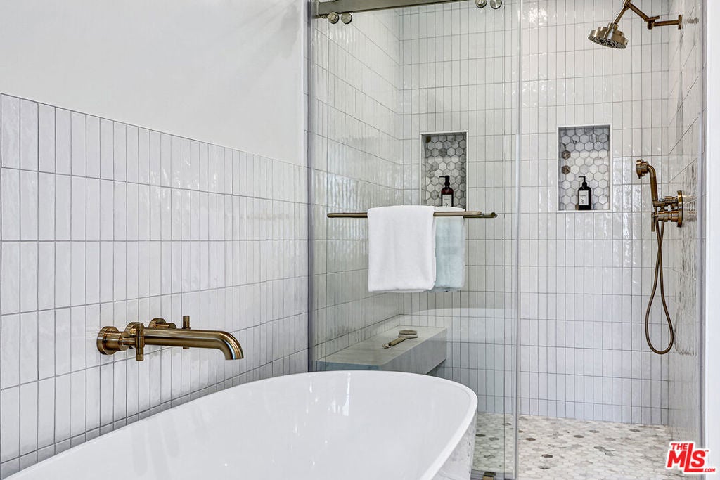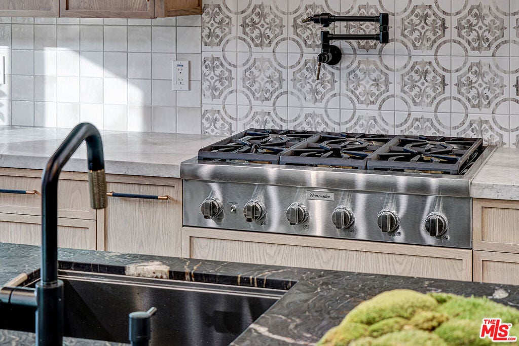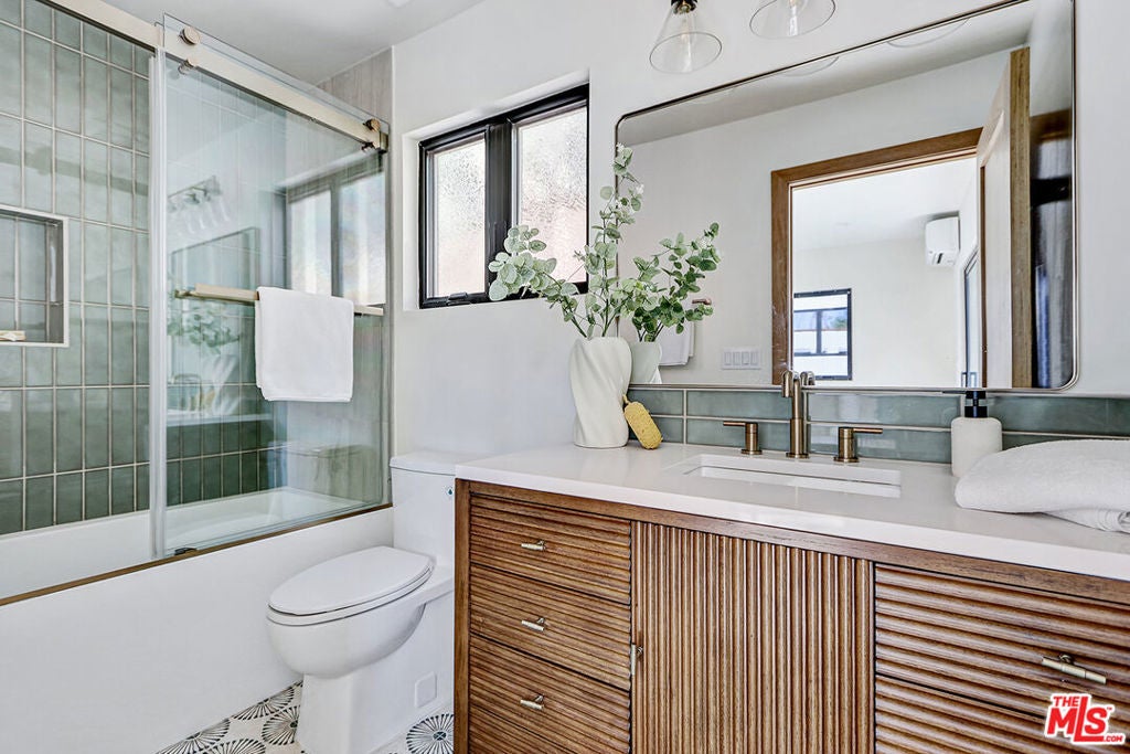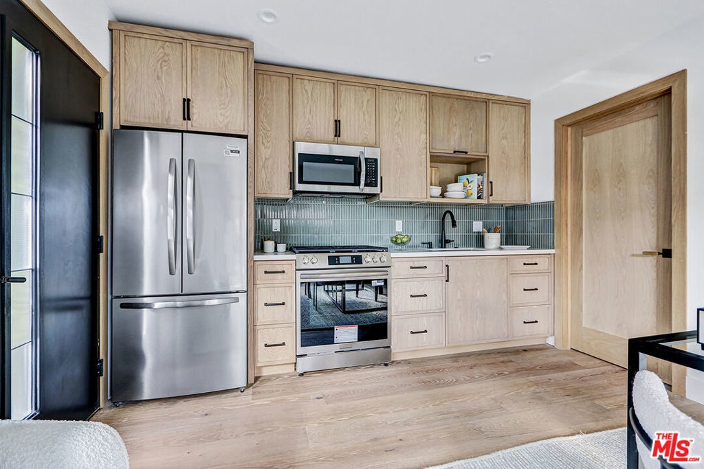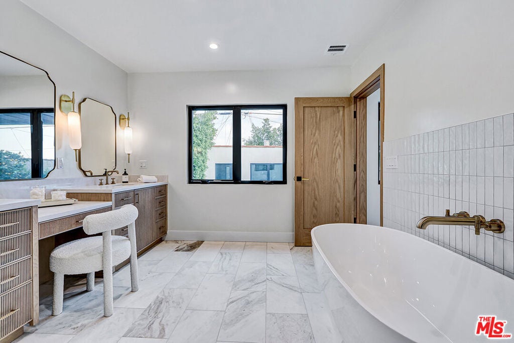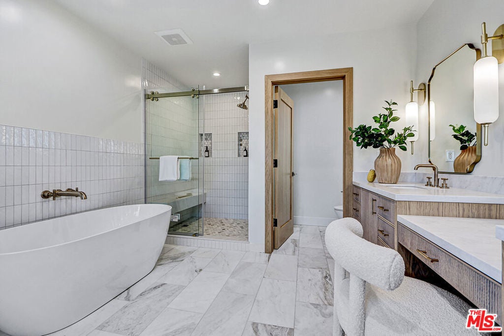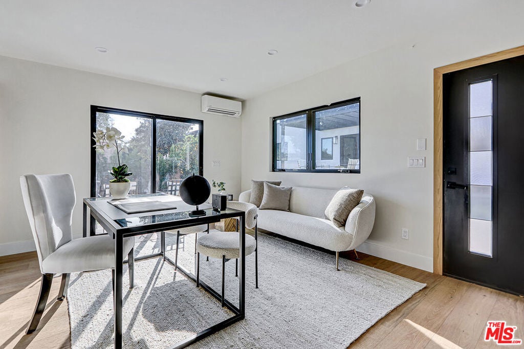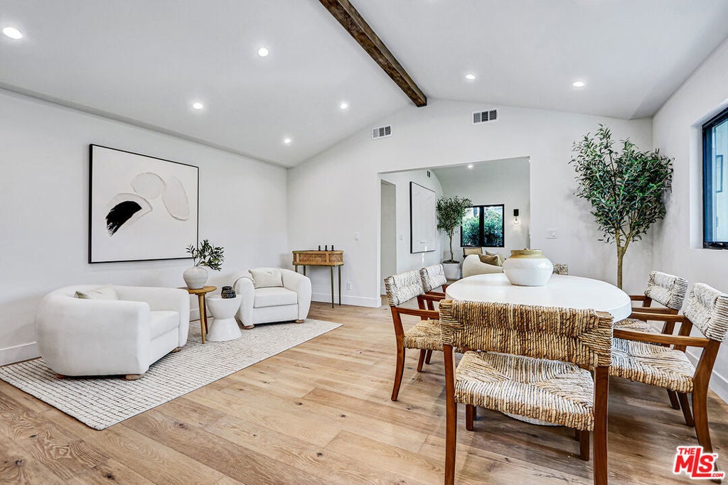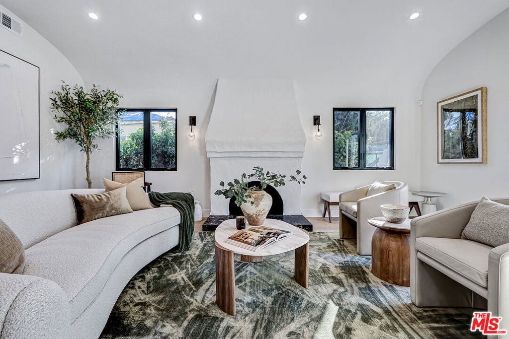 Extensively reimagined single-family residence with detached ADU, offering a flexible layout and cohesive design throughout. The home blends the feel of new construction with the character of an established neighborhood, featuring updated systems and refined finishes that create an easy transition for its next owner.A welcoming living room with fireplace opens into the main living areas, while a front enclosed patio adds additional usable space. Interior finishes include wood floors throughout, Milgard windows, pre-wiring for speakers, Ring doorbell, and security cameras.The kitchen is designed for everyday use and gathering, with a farmhouse aesthetic, breakfast bar, two sinks, six-burner cooktop with pot filler, farmhouse sink, Thermador double convection ovens with remote diagnostics and voice control, microwave, and Thermador French-door refrigerator.A dedicated laundry room includes a sink, built-in cabinetry, and space for a stackable washer/dryer.The primary suite offers generous proportions, a walk-in closet, an oversized shower with rain head, standalone soaking tub, and double vanity with seated vanity area.Outdoor spaces include rear deck suitable for dining or relaxing, herb garden, orange trees and full grass yard.The detached ADU provides additional flexibility with a custom walk-in closet, sliding doors with side patio access, Frigidaire appliances, and a bathroom with tub/shower combination.Offered as-is.