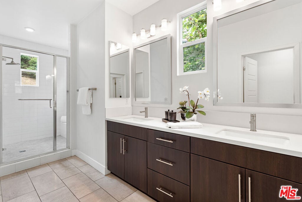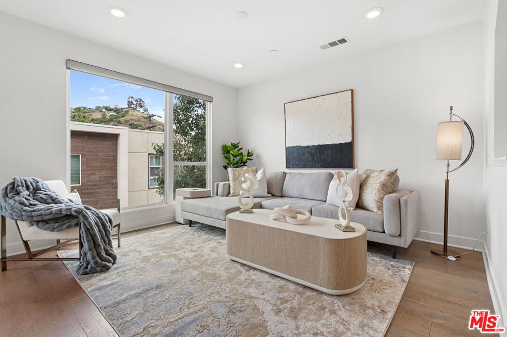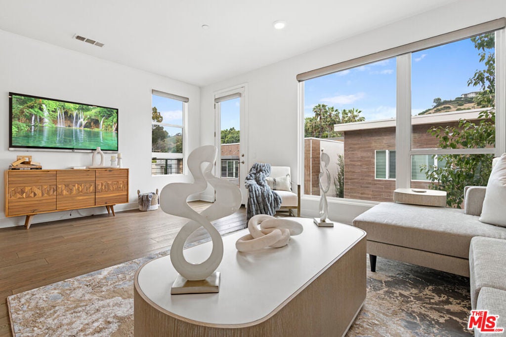 Welcome to the premier gated community in the Hollywood Hills and its finest residence. This turnkey 3-bedroom, 3.5-bath multi-level end unit is flooded with natural light from three exposures, a rare privilege shared by only two homes in the community.The main level features an open-concept kitchen thoughtfully designed with custom cabinetry, Caesarstone countertops, and top-of-the-line stainless steel appliances. This level also includes a guest bath and a spacious living area with "walls of windows" and large sliding doors that open to your backyard oasis, one of the largest in the community. This upgraded outdoor space is ideal for entertaining and includes custom built-in seating and a fully equipped BBQ kitchen surrounded by nature and the greenery of the hills.Upstairs are two large en-suite bedrooms, including the primary suite with lofted ceilings. Your primary bedroom features an incredible primary bath featuring dual sinks, oversized shower and an oversized walk in closet. On the entry level, the home offers an additional en-suite guest bedroom along with a private two-car garage.Built in 2015, the home is equipped with smart-home features including a Nexia and Ring automated system, programmable thermostat, energy-efficient lighting, tankless water heater, high efficiency Washer/Dryer, insulated air ducts, and high-performance windows with push-button Hunter Douglas automated blinds backed by a lifetime warranty.Ideally located near the Hollywood Bowl and Runyon Canyon, and only a minutes to the valley, this home offers an exceptional balance of privacy, convenience, and elevated city living. Whether you are looking for your new primary residence or looking to find a rental property that will fetch a premium, this has it all.