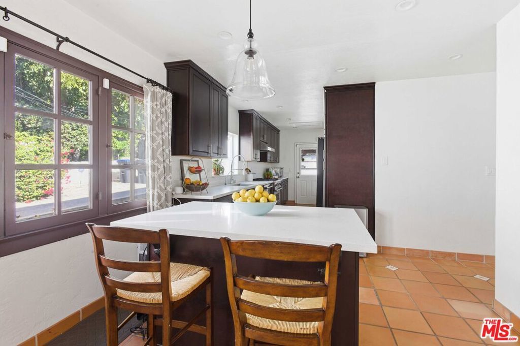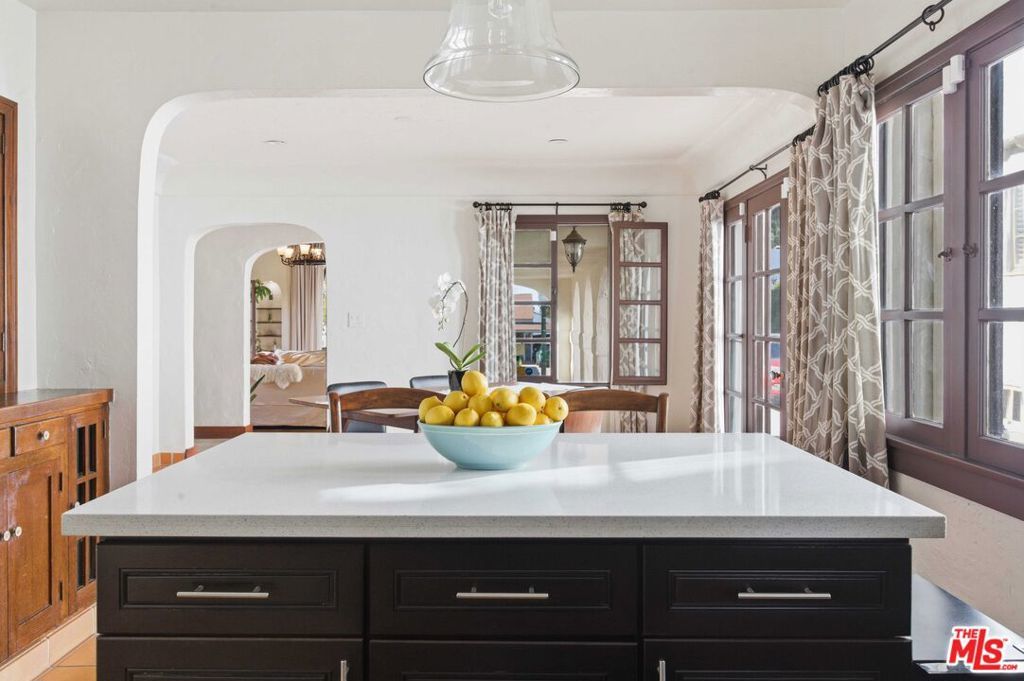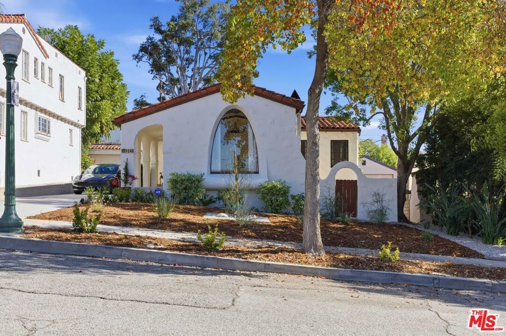 Set on a quiet street in prime Rossmoyne, just three doors below Mountain Street, this 1928 Spanish Revival home reflects the architectural roots of one of Glendale's most admired historic neighborhoods. Rossmoyne was thoughtfully developed in the 1920s with an emphasis on cohesive design, gracious streetscapes, and enduring craftsmanship qualities still evident throughout the area today. A series of deep arches welcomes you at the front porch, where textured plaster and graceful curves immediately highlight the home's classic character. Inside, the living room feels spacious and inviting, featuring a vaulted ceiling with original wood beams and abundant natural light from a striking arched window. The fireplace anchors the space, flanked by charming niches that echo the home's signature arches. The dining area flows seamlessly from the living room through wide archways, creating a warm and connected layout. Terracotta floors add character and warmth, while French doors open to the backyard, making indoor-outdoor living easy and enjoyable. The updated kitchen offers generous workspace and thoughtful finishes, blending modern convenience with the home's original style. All three bedrooms are well proportioned, filled with natural light, and thoughtfully laid out for comfort and privacy. One bedroom opens directly to the backyard, offering flexibility for a home office, guest space, or private retreat. Outdoors, mature ficus trees and drought-tolerant landscaping create a spacious and private garden ideal for relaxing, entertaining, or everyday enjoyment. A detached two-car garage is located at the rear of the property, consistent with the neighborhood's original planning and lot design. The home has been enhanced with valuable modern upgrades, including fully owned solar panels, a whole-house water softener, a Level 2 EV charger, and a bolted and braced foundation, providing long-term peace of mind while respecting the home's period integrity. Rossmoyne is prized for its tree-lined streets, architectural continuity, and strong sense of community. Just blocks from Nibley Park, Trader Joe's, and Whole Foods, this is a neighborhood known for both its historic charm and everyday livability a place where classic architecture and modern life come together beautifully.