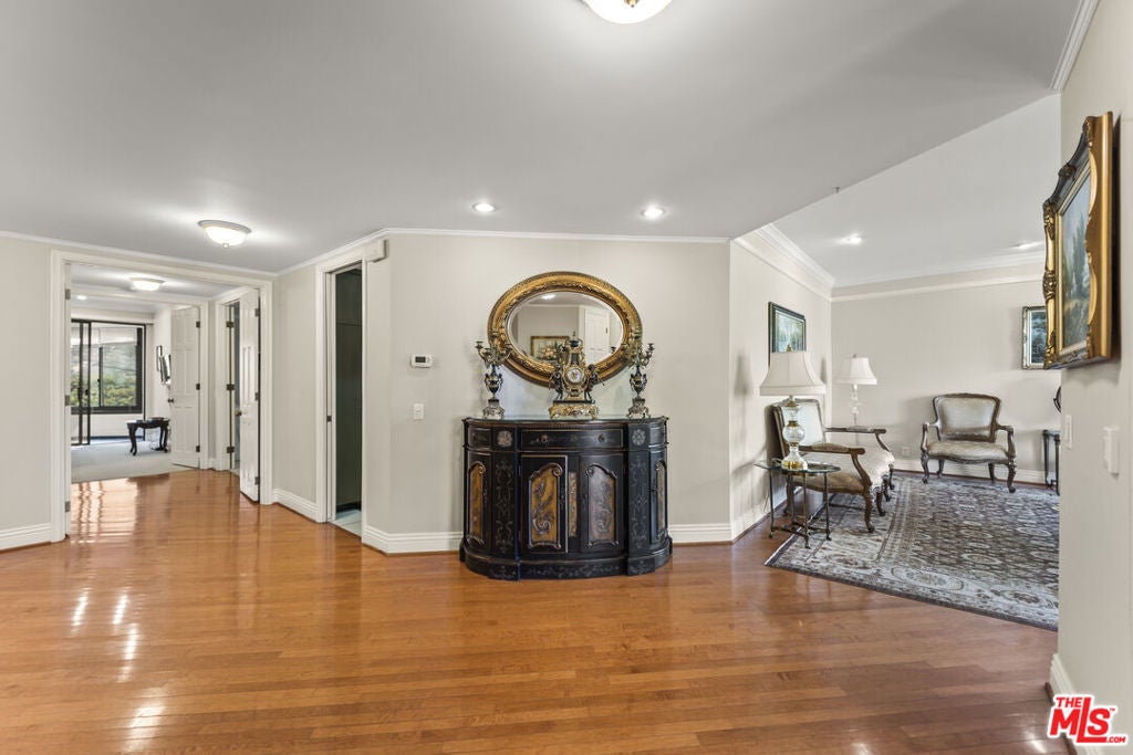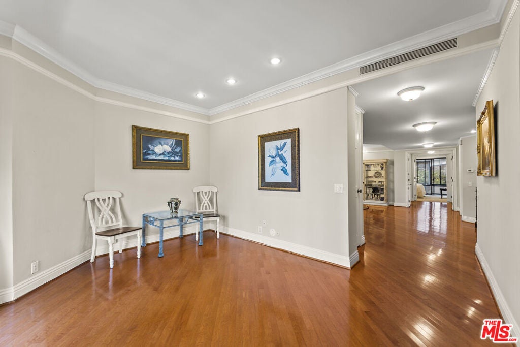 Located in the heart of the exclusive guard-gated Encino Towers, this expansive 2,400 sq. ft. single-story residence offers a rare blend of space, privacy, and resort-style living. Positioned on the second floor with only two units per floor, the home features generous living, family, and dining areas, two fireplaces, and three private balconies with serene views of trees, hills, and the community below. The spacious primary suite is a peaceful retreat with double-door entry, walk-in closets, fireplace, a large en-suite bath, and direct balcony access. Additional highlights include a well-appointed kitchen, in-unit laundry, guest powder room, two side-by-side parking spaces, guest parking, and extra storage. Encino Towers is known for its beautifully landscaped grounds, 24-hour security, heated pool and spas, waterfalls, tennis and pickleball courts, walking paths, and recreation room. All building were recently freshly painted, windows washed and lobby and elevators beautifully updated. Ideally located just south of Ventura Boulevard and across from Los Encinos State Historic Park, with easy access to shopping and dining, this home offers elevated Valley living in a peaceful, resort-like setting.