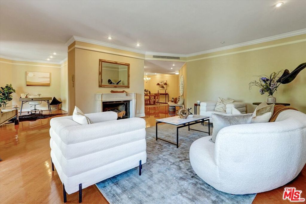 Set within the prestigious 24-hour guard-gated community of Encino Towers, this expansive 2,400 sq. ft. single-story residence offers a rare combination of space, privacy, and effortless living. Located on the second floor with only two residences per level, the home provides a quiet, secure environment with the feel of a private retreat. Designed for luxury, comfort and ease, the residence features generous living, family, and dining areas, two fireplaces, and three private balconies overlooking peaceful, tree-lined views. The spacious primary suite offers a true sense of retreat, with double-door entry, a walk-in closet, fireplace, large en-suite bath, and direct access to a private balcony. Additional highlights include a well-appointed kitchen, in-unit laundry, guest powder room, and a secured garage with two side-by-side parking spaces, along with ample guest parking and extra storage. Access from Garage to unit with no stairs. Encino Towers is known for its beautifully maintained, tranquil grounds and full-service amenities, including 24-hour gated security, heated pool and spas, waterfalls, tennis and pickleball courts, walking paths, and a recreation room. The community has also been recently refreshed with updated lobbies, elevators, and exterior finishes. Ideally located just south of Ventura Boulevard and across from Los Encinos State Historic Park, this home offers a peaceful, secure, and refined lifestyle in one of Encino's most sought-after communities. Included in the HOA: 24-hour guard gated security, earthquake insurance, water, high-speed internet, and cable TV
