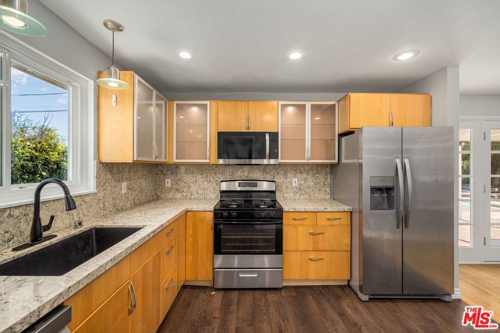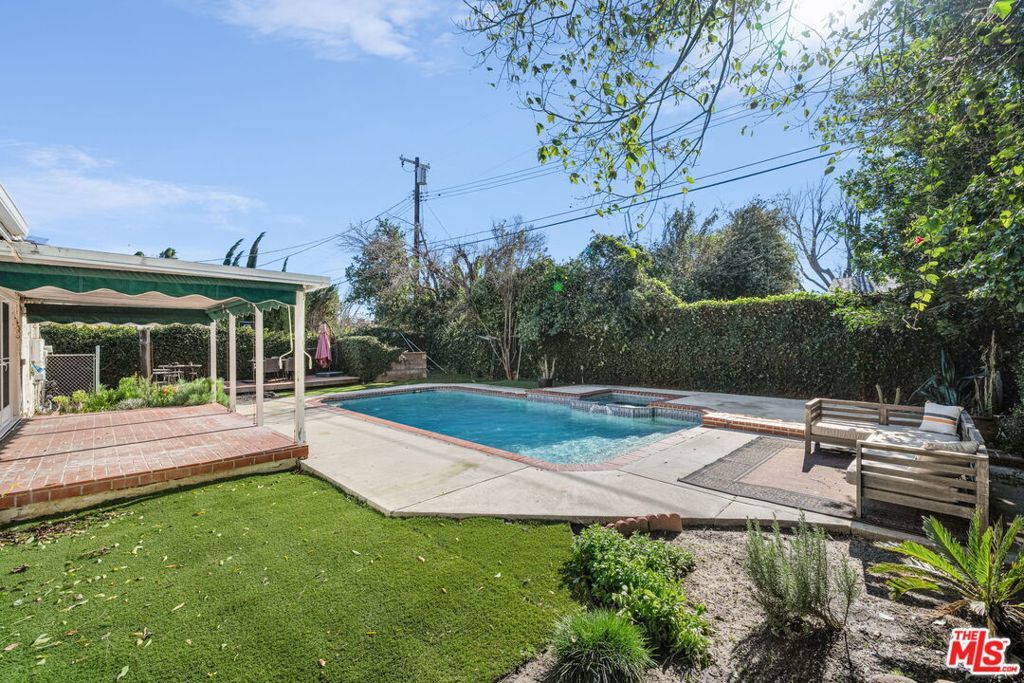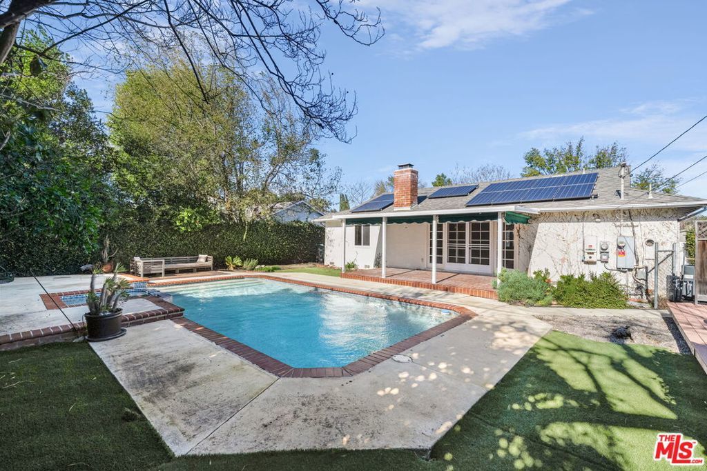 Welcome to 23020 Haynes Street, a stunning 4-bedroom, 2-bathroom West Hills home combining classic charm with a peaceful private backyard oasis. Beautifully updated 4 bedroom, 2-bath home offering style, comfort, and everyday convenience. Filled with natural light, this inviting residence was updated in 2023 updated bathrooms and the kitchen features new appliances. The open-concept kitchen seamlessly flows into the dining and living areas, creating an ideal space for both daily living and entertaining. A versatile bonus room with French doors connects to the second bathroom and can be used as a home office, formal dining room, or guest space. Step outside to a private backyard oasis featuring a sparkling pool, Jacuzzi, patio, and wood deck perfect for relaxing or hosting gatherings. Additional highlights include solar panels, new HVAC system, Ecobee smart thermostat, tankless water heater, and double-paned windows. The home also offers a 2-car garage with extra storage and attractive low-water landscaping. Located in the award-winning El Camino Real High School district, including Blue Ribbon elementary and charter middle and high schools. Conveniently located near schools, parks, shopping, and dining, making everyday living effortless. This is a rare opportunity to enjoy a beautiful home with exceptional outdoor space in a highly desirable West Hills location!
