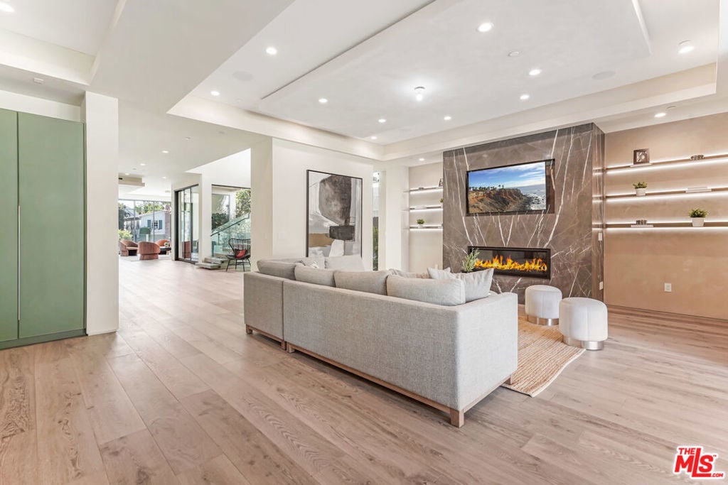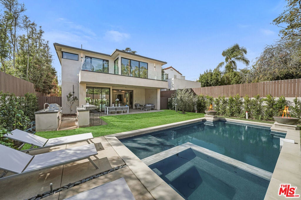 318 Medio Drive is an architecturally striking residence situated in the heart of Brentwood. Defined by warm, natural tones and a modern aesthetic, the home combines clean lines, a thoughtful floor plan, and a refined selection of materials to create an elevated living experience. The main level features a sleek, open layout ideal for both daily living and entertaining. The designer kitchen is equipped with state-of-the-art Miele appliances and connects seamlessly to the living and dining areas. Floor-to-ceiling glass doors extend the interiors to the landscaped backyard, where a pool, spa, and built-in BBQ provide a private setting for outdoor enjoyment. A rare highlight of the property is the 2,000-square-foot entertainer's basement, complete with a spa and flexible space for leisure, wellness, or relaxation. The upper level includes three generously sized bedrooms, complemented by a primary suite with fireplace, private terrace, dual spa-like bathrooms, and oversized walk-in closets. High ceilings, natural light, and sophisticated finishes are carried throughout the residence. With its architectural integrity, luxury amenities, and premier Brentwood location just moments from the shops and restaurants of San Vicente Boulevard, 318 Medio Drive presents an exceptional opportunity to reside a distinguished property in one of Los Angeles' most sought-after neighborhoods. Lease term to be 18-months minimum.