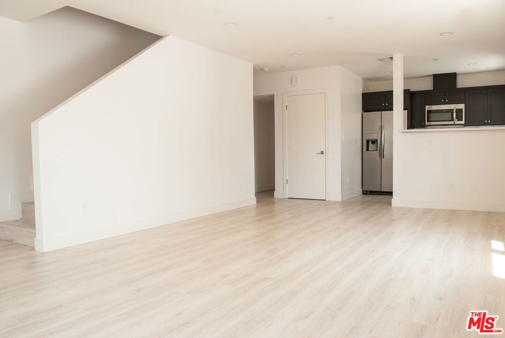 The unit has 4 onsite parking spaces. 2 Car enclosed garage with side by side space and 2 additional onsite spaces making a total of 4 spaces for this unit. Located in a quiet neighborhood, offering a comfortable and practical living environment. The unit provides a functional layout suitable for everyday living, with ample space for relaxation and daily activities. Stainless steel appliances and washer dryer is included. Beautiful back yard with citrus trees for all occupants to enjoy. Central air and heat. The subject property located in the Hollywood/Los Angeles area near Koreatown and central Los Angeles, in an urban neighborhood with many shops, services, transit options, and restaurants. The area scores high for walkability and offers good access to transit and amenities.