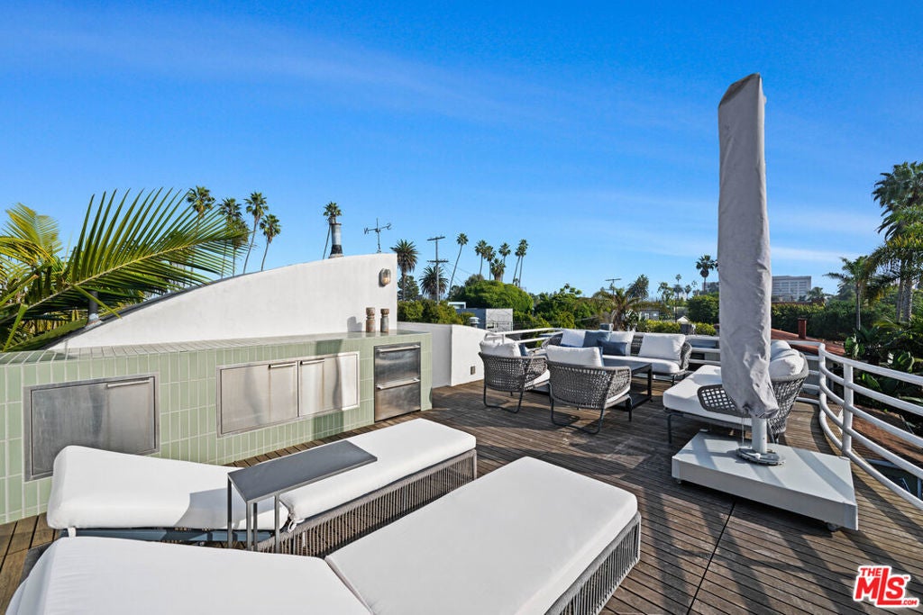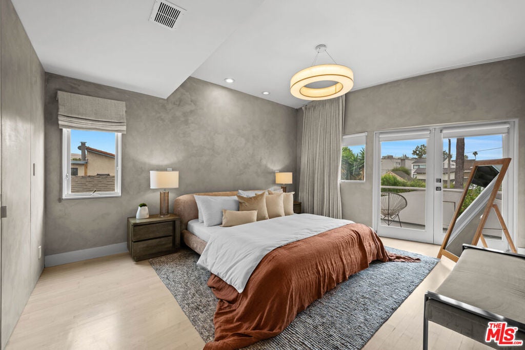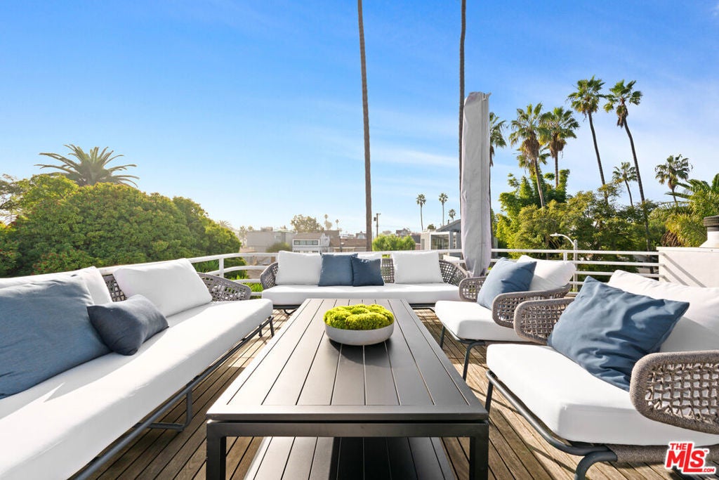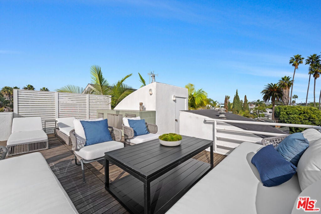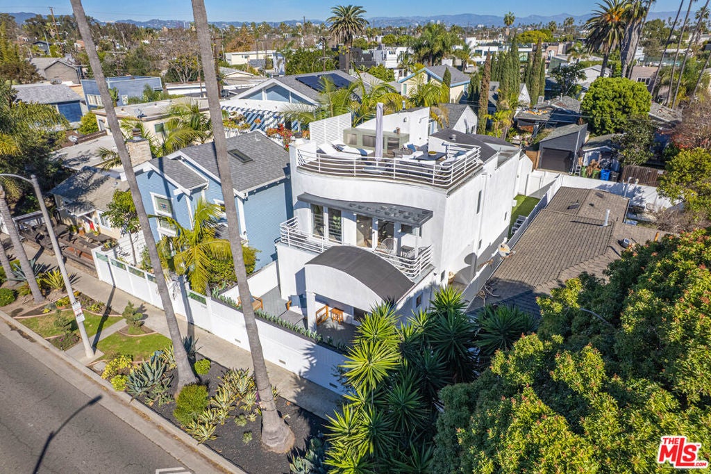 Modern, private, and effortlessly cool, this gated contemporary residence offers the best of Venice living just moments from the beach and the canals. Designed by renowned local architect Toby Watson, the home blends clean lines, thoughtful design, and indoor outdoor living in all the right ways.The three bedroom, three bathroom home spans approximately 1,672 square feet on a 2,705 square foot lot and immediately welcomes you with a charming front porch, perfect for morning coffee, evening wine, or relaxed outdoor lounging.Inside, hardwood floors, recessed lighting, and a sleek contemporary fireplace with built in book cabinetry set the tone. The main living space flows seamlessly into an upgraded kitchen featuring stone countertops, stainless steel appliances, ample cabinetry, and a wine refrigerator. A tucked away nook off the main level offers an ideal space for a home office, while a powder room and laundry area complete the downstairs.All three bedrooms are located on the second level. The primary suite is a serene retreat with a lime washed finish, generous custom closet system, private balcony, and a spa like bathroom with heated floors, soaking tub, and multiple shower heads. One secondary bedroom also enjoys its own balcony, while the two additional bedrooms share a beautifully updated bath with skylights, heated floors, and a steam shower.Upstairs, a rooftop deck creates the ultimate entertaining escape, complete with refrigerator and freezer and treetop views that capture the essence of coastal Venice. Downstairs, the private backyard offers additional space for barbecuing, dining, and hosting friends.Additional features include speakers throughout the home and a large two car garage with loft and abundant storage, offering the potential for a creative studio, office, or bonus space.Gated, secure, and move in ready, this home delivers modern design, privacy, and a prime Venice location in one exceptional package.