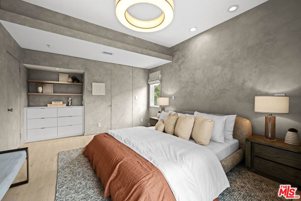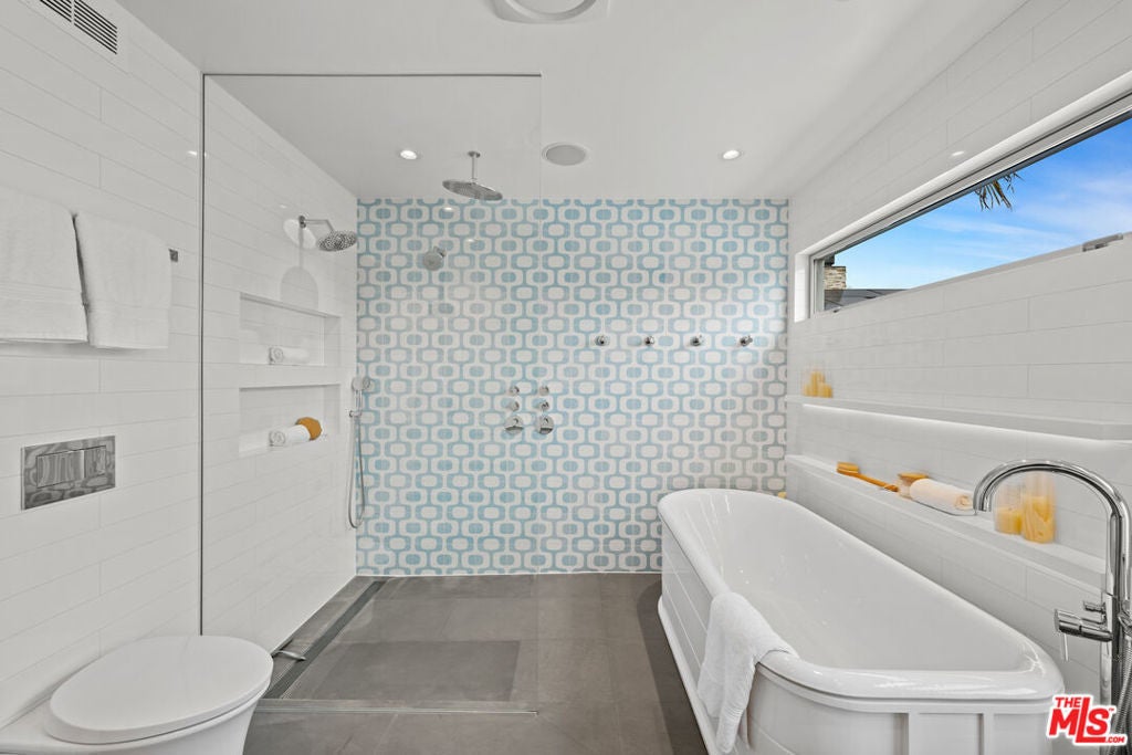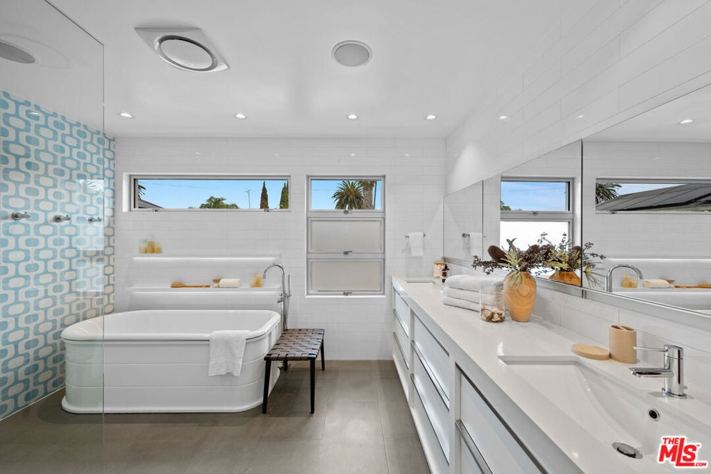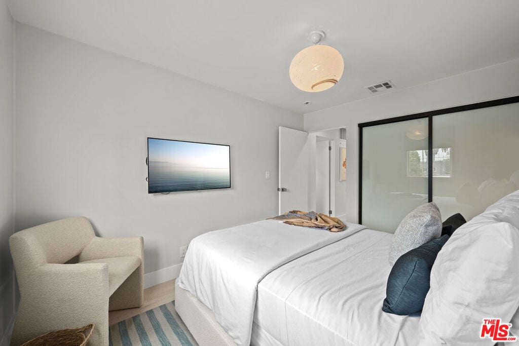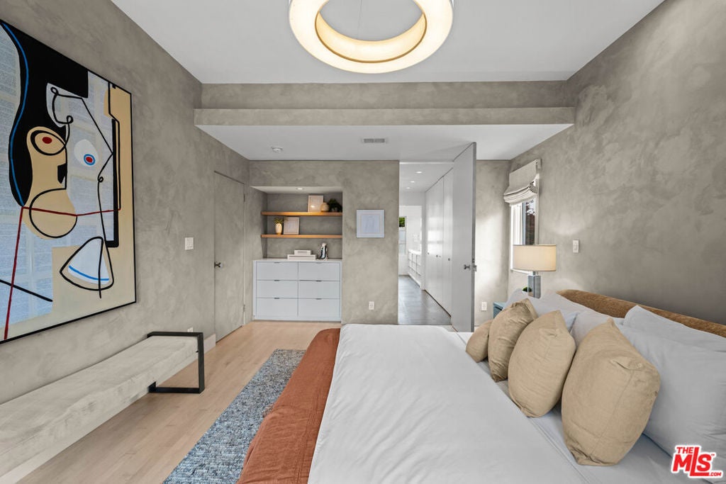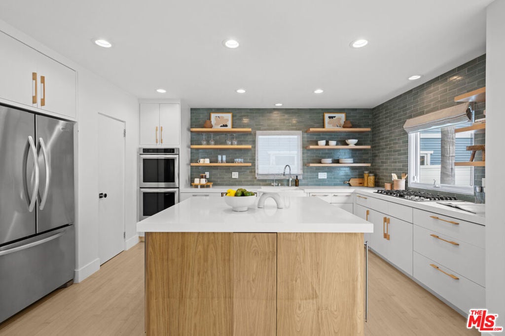 Modern, private, and effortlessly cool, this gated contemporary residence offers the best of Venice living just moments from the beach and the canals. Designed by renowned local architect Toby Watson, the home blends clean lines, thoughtful design, and indoor outdoor living in all the right ways.The three bedroom, three bathroom home spans approximately 1,672 square feet on a 2,705 square foot lot and immediately welcomes you with a charming front porch, perfect for morning coffee, evening wine, or relaxed outdoor lounging.Inside, hardwood floors, recessed lighting, and a sleek contemporary fireplace with built in book cabinetry set the tone. The main living space flows seamlessly into an upgraded kitchen featuring stone countertops, stainless steel appliances, ample cabinetry, and a wine refrigerator. A tucked away nook off the main level offers an ideal space for a home office, while a powder room and laundry area complete the downstairs.All three bedrooms are located on the second level. The primary suite is a serene retreat with a lime washed finish, generous custom closet system, private balcony, and a spa like bathroom with heated floors, soaking tub, and multiple shower heads. One secondary bedroom also enjoys its own balcony, while the two additional bedrooms share a beautifully updated bath with skylights, heated floors, and a steam shower.Upstairs, a rooftop deck creates the ultimate entertaining escape, complete with refrigerator and freezer and treetop views that capture the essence of coastal Venice. Downstairs, the private backyard offers additional space for barbecuing, dining, and hosting friends.Additional features include speakers throughout the home and a large two car garage with loft and abundant storage, offering the potential for a creative studio, office, or bonus space.Gated, secure, and move in ready, this home delivers modern design, privacy, and a prime Venice location in one exceptional package.
