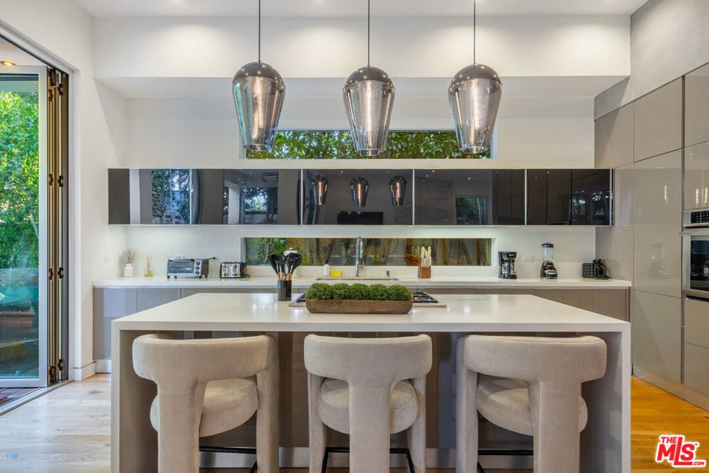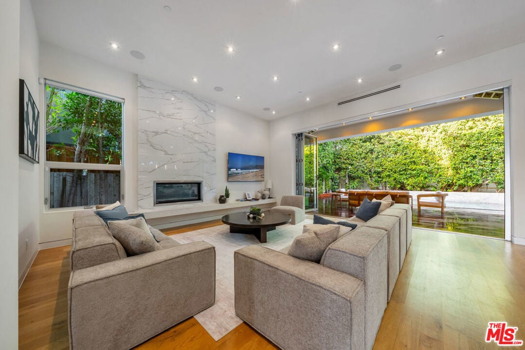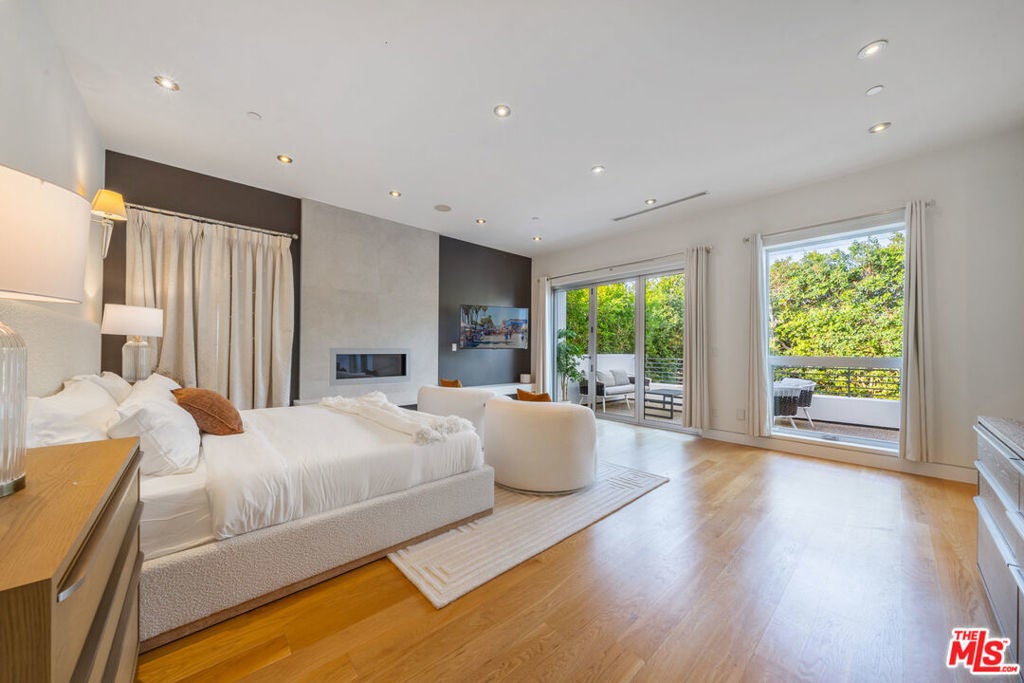 Fully and newly furnished! This stylish 5-bed, 6-bath modern home blends luxury and comfort. The open-concept layout features warm oak floors, high ceilings, and folding doors that create true indoor outdoor living. The sleek chef's kitchen is equipped with Miele appliances, contemporary cabinetry, and a large center island perfect for gathering. The serene primary suite offers a private balcony, walk-in closet, and spa-inspired bathroom. Additional sunlit ensuite bedrooms. A full laundry room adds convenience, while the private backyard showcases a sunlit pool and spa surrounded by lush landscaping. Located in prime Beverly Grove, moments from The Grove, Beverly Center, dining, and cafes this home delivers the ideal LA lifestyle.