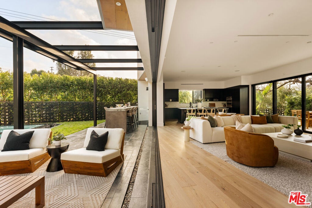 Set within the coveted Upper North Westport Heights neighborhood of Westchester, 5988 W 76th Street is a striking custom-built residence that defines modern luxury through intentional design, privacy, and effortless sophistication. Positioned on a prominent corner lot along one of the area's most desirable streets, the home is artfully shielded by architectural breeze blocks and mature hedging, creating a serene retreat with commanding presence. A thoughtfully landscaped approach, anchored by a tranquil reflection pool, introduces the home's refined aesthetic. Beyond a custom metal-clad entry door, a grand foyer with intricate wood inlay sets the tone for the exceptional craftsmanship found throughout. The expansive great room opens seamlessly to dual terraces through sliding glass walls, blurring the line between indoor and outdoor living. A sleek gas fireplace anchors the space, while the adjacent chef's kitchen impresses with Miele appliances, bespoke cabinetry, and a dramatic natural quartzite island designed for both form and function. The lower-level entertainment floor is a true sanctuary, featuring a full bath, wine and wet bar, and generous space adaptable as a cinema lounge, an impressive home gym, and dedicated storage. Bathed in natural light from dual garden-facing light wells, this level offers a rare sense of calm and wellness, once serving as the private training retreat of NFL standout Joey Bosa. Upstairs, a glass-enclosed staircase leads to three well-appointed bedrooms, a dedicated office, and a tranquil sitting area. The primary suite is a private haven, complete with a spa-inspired bath and custom walk-in closet designed to elevate daily living. Outdoors, the resort-style grounds invite both relaxation and entertaining. An infinity-edge pool with jetted spa, a fully equipped outdoor kitchen with built-in dining, and a contemporary fire pit create an ideal backdrop for memorable gatherings or quiet evenings at home. An 8kW whole-home solar system completes the residence, seamlessly blending sustainability with luxury. A rare offering in one of Westchester's most sought-after enclaves, 5988 W 76th Street is more than a homeit is a thoughtfully curated lifestyle defined by design, privacy, and distinction.