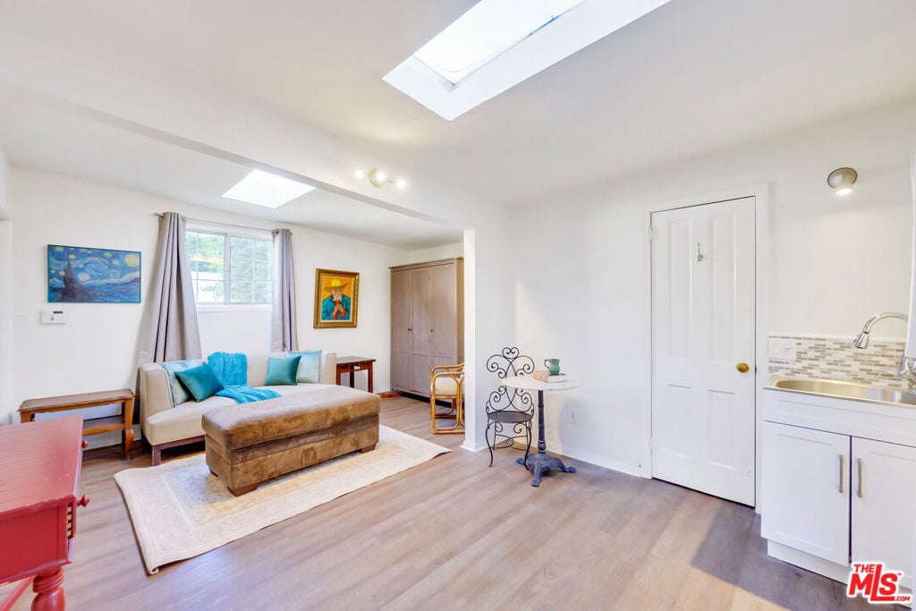 FULLY FURNISHED. NEWLY REMODELED. MAIN HOUSE (2 BED/2BATH) PLUS GUEST HOUSE (IDEAL FOR OFFICE, STUDIO, PLAY ROOM). DESIGNER KITCHEN! Luxury vinyl plank floors, high volume ceilings, low voltage art lights throughout, and steam shower, spa tub, newer stainless steel appliances. large kitchen with two sinks, Italian back-splash tile, beautiful stone tiled bathroom, Redwood deck, BACKYARD WITH FIREPLACE, patio, outdoor lighting and speakers. Walk to markets, trendy boutiques, world-famous shopping and elegant dining. Easy transportation, CLOSE TO CEDARS SINAI.