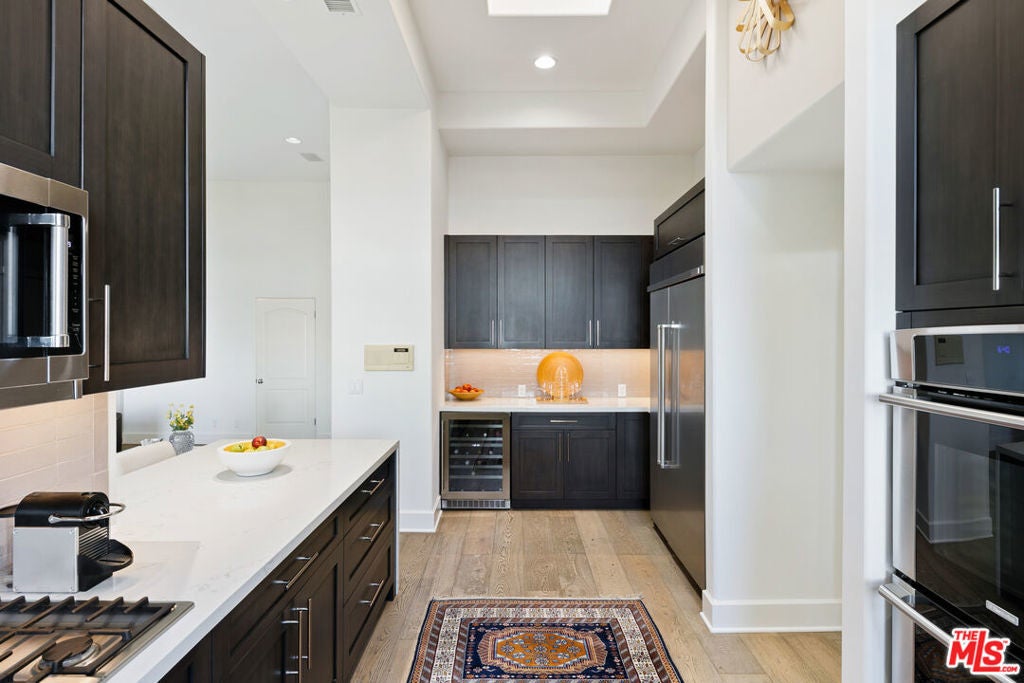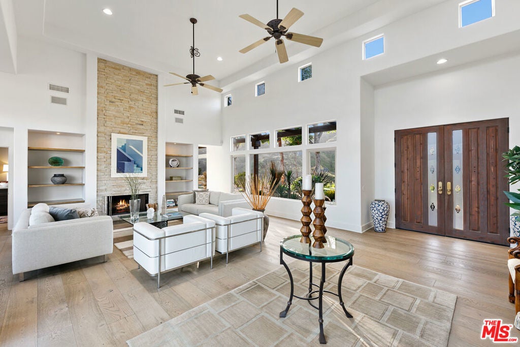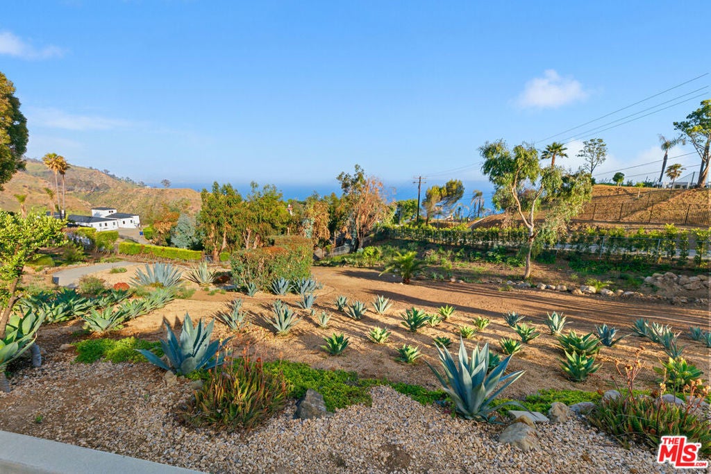 Introducing this exceptional Santa Fe-Contemporary style Malibu retreat with sweeping ocean views and coveted La Costa Beach Club rights. Set on a private 1.57-acre promontory 600 feet above the Pacific with sweeping 270 degree views, this fully gated estate offers a rare convergence of privacy, architectural integrity, and natural beauty. Every detail has been thoughtfully curated to embrace its spectacular setting, with panoramic vistas stretching from Palos Verdes and the Queen's Necklace to Catalina Island, the Santa Monica Pier, and the surrounding canyons. Framed by meticulously landscaped, drought-tolerant gardens and a manicured grassy lawn, the home has been extensively remodeled and combines contemporary living in a peaceful mountain setting. Enter through a dramatic 200-foot driveway to the beautifully designed single-level home, featuring soaring 10- to 16-foot ceilings, clerestory windows, and walls of glass that invite natural light and unfolding ocean views from nearly every room. The open-concept living spaces are anchored by a great room with a newly built slip stone fireplace and custom walnut display shelving, seamlessly flowing into the dining area. French doors open to a backyard oasis featuring a 40' Italian porcelain patio with a pergola, gravel fire pit terrace, al fresco dining area, and a sunken citrus gardenperfect for entertaining. The chef's kitchen boasts Columbia custom cabinetry, a waterfall-edge Pental quartz island with a breakfast bar, and top-of-the-line appliances including a 48" KitchenAid refrigerator, Bosch gas cooktop, Electrolux double ovens, and a Superior wine cabinet. There is an adjoining media room with a built-in 68" flatscreen and exterior access to a barbecue patio. The spacious primary suite enjoys head-on views of the Pacific and sparkling city lights, with direct patio access, a large walk-in closet, and a spa-inspired bath with a double vanity, shower, and soaking tub. There are two additional guest bedrooms with stunning mountain views, including one currently set up as an office. Additional amenities include a Sonos surround sound system, engineered French White Oak flooring, a security system with cameras, a two-car garage with epoxy flooring, and ample parking. Enjoy an exclusive deeded membership to the La Costa Beach Club and tennis courts, offering the ultimate in resort-style Malibu living. The property also includes a deeded road membership with access via a guard-gated private road, providing a direct route to PCH in just minutes. Ideally located in Eastern Malibu with convenient access to Santa Monica and the Westside, beaches, hiking trails, and more. This is a one-of-a-kind property with unparalleled privacy and refined design in an unmatched Malibu setting! There was previously a 1 bed / 1.5 bath detached guest house that was lost in the Palisades fire.
