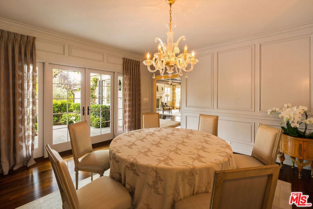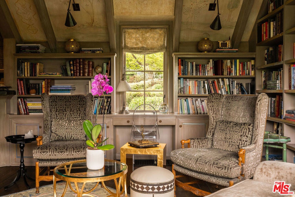 Elegant Bel Air Estate with Tennis Court, Pool & Timeless Charm! Set behind gates on a generous 25,969 SF lot, this timeless Gerard Colcord residence offers classic design, modern comforts, and exceptional amenities in one of Bel Air's most coveted enclaves. With approximately 5,616 SF of living space, the home features 6 bedrooms and 5.5 bathrooms, blending character-rich details, such as custom millwork, vaulted ceilings, and four fireplaces, with thoughtful updates including a new generator, central vacuum system, and integrated audio-visual wiring. The heart of the home is a chef's kitchen with Calacatta marble counters, top-of-the-line appliances, and a separate butler's pantry/scullery kitchen, perfect for entertaining with ease. The multiple living areas include a gracious formal living room with wood-beamed ceilings, a cozy den with wet bar, and a sunlit family room. Upstairs, the serene primary suite offers sweeping views, a fireplace, a spacious sitting area, balcony, huge closet, and a spa-like bath with a soaking tub and Calacatta marble shower. The incredible park-like grounds are designed for both recreation and relaxation. A full-size tennis court with basketball hoop, a pool and spa with Bluestone decking, and patio with retractable awnings create the ultimate indoor-outdoor lifestyle. Mature landscaping and privacy hedges frame the property, offering a tranquil retreat that's a short drive to Brentwood, Beverly Hills, Westwood, and more!