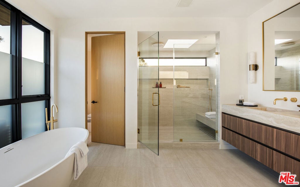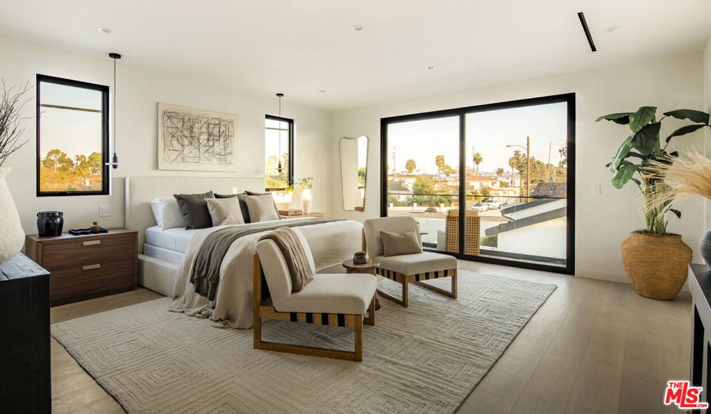 A newly built expression of quiet luxury, this modern contemporary home blends warm natural materials, abundant light, and effortless indooroutdoor living. Set on a 5,642 SF lot, this 3,493 SF home features 4 bedrooms, 4.5 bathrooms, a 424 SF attached ADU with bonus room, and a spacious 2-car garage, with every detail thoughtfully executed, including European white oak floors, white oak doors, and oversized windows throughout. Walk inside to a custom pivot entry that sets the tone for the elevated design within. At the center of the home, an open living and dining area with a natural travertine fireplace unfolds into the chef's kitchen with Taj Mahal quartzite countertops, panel-ready Thermador appliances, and smart technology. Expansive glass windows and sliders reveal a spacious turf backyard, landscaped courtyard, and a glass-enclosed side lounge that creates a striking moment upon entry. Upstairs, the light-filled primary suite offers a private balcony, an extra-large custom closet, and a spa-inspired bath with natural stone, integrated dual sinks, a freestanding tub, and an oversized shower. Two additional ensuite bedrooms, one with its own balcony, and a dedicated laundry room complete the second level. Designed for flexibility, the attached ADU includes a dedicated office/bonus room and a private bedroom with a full bath that has its own entrance and a coffee bar. Outdoors, Mediterranean-inspired landscaping, glass-railed balconies, Sonos sound system, and multiple patios create a serene environment for relaxing or entertaining. Located in the desirable Del Rey neighborhood, just moments from the beach, the marina, shopping, dining, and top fitness studios.