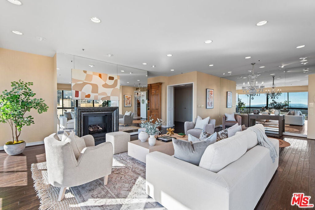 Rising high above the Wilshire Corridor at the coveted Westford on the 15th floor, this expansive 3 bedroom, 4 bathroom corner residence offers nearly 2,700 SQFT of refined living space paired with sweeping unobstructed panoramic views stretching from the Downtown LA skyline to the Pacific Ocean. Dramatic floor-to-ceiling windows frame the ever changing cityscape, while multiple balconies invite the outdoors in, effortlessly extending the living experience. The layout is both generous and thoughtfully designed, delivering a unique sense of privacy rarely found in high-rise living. The main living space flows effortlessly for both everyday living and elegant entertaining, offering an open floor plan anchored by a cozy fireplace that adds warmth and dimension as the city lights come alive at dusk. Spacious dining area and separate family room further enhance the home's excellent functionality. A cook's kitchen boasts granite countertops, an abundance of cabinetry, and a convenient breakfast area. At the end of the day, retreat to the primary suite, featuring a large walk-in closet with custom built-ins, a private balcony, and a well-appointed en-suite bathroom. Secondary bedrooms are generously sized and each enjoys its own en-suite bath. The Westford delivers a truly elevated full-service lifestyle with seamless lock-and-leave experience, featuring 24/7 concierge and security, valet parking with two designated side-by-side spaces, a fitness center, pool and spa, saunas, and an elegant resident social room. HOA dues include earthquake insurance, storage space, water, sewer, and WiFi with basic cable. Ideally situated just moments from UCLA, Westwood Village, Century City, and Beverly Hills, the location offers effortless proximity to world-class dining, shopping, cultural destinations, key city routes, and freeways. A rare Wilshire Corridor offering defined by scale, discretion, service, and commanding views.