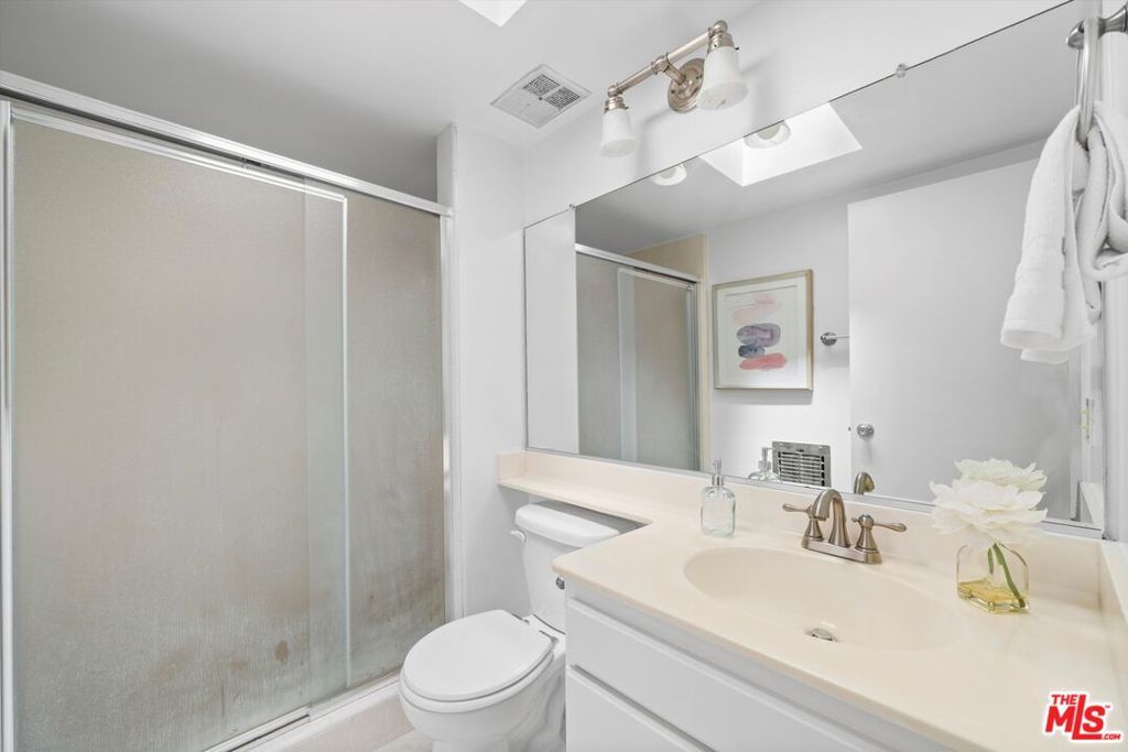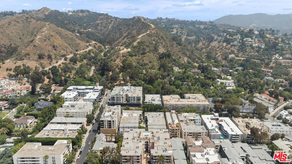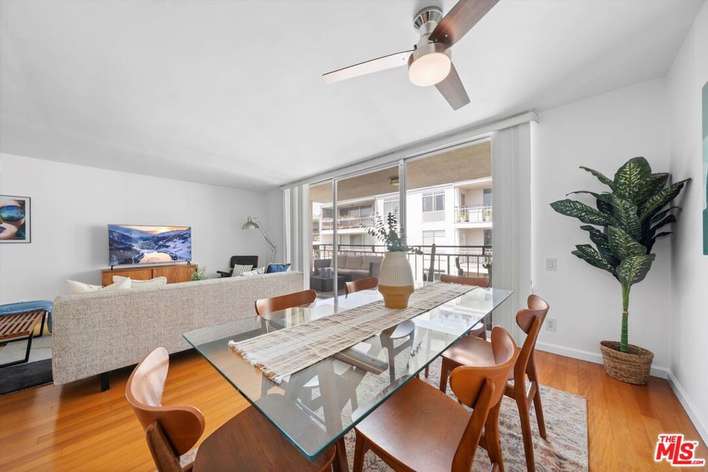 Turnkey, top-floor condo with large private outdoor space in the heart of Hollywood! Freshly painted and filled with natural light, this quiet top-floor condo offers a bright and airy retreat a short distance from the iconic Sunset Strip and Runyon Canyon hiking trails. Enter through double doors into a spacious, thoughtfully designed open layout that gives mid-century vibes and features gleaming hardwood floors, floor-to-ceiling sliders, and an oversized balcony with pool views. The open-concept living and dining areas flow seamlessly into a large, updated kitchen complete with quartz countertops and stainless steel appliances. The bedroom features balcony access, a walk-in closet, and a floor-to-ceiling window that invites in abundant light. With two bathrooms, both with skylights, you can enjoy the flexibility of having separate guest and primary bath options, ready to enjoy or personalize to your taste. Additional highlights include ample in-unit storage, dedicated garage storage, and close proximity to the laundry room, elevator, and parking. The 50-unit Key Largo community offers secured entry, a pool and spa, a peaceful courtyard, and guest parking. Outside, you have easy access to a variety of nightlife, restaurants, fitness options, luxury hotels, and the Hollywood Metro Rail. This vibrant location perfectly blends convenience, nature, and classic L.A. energy.