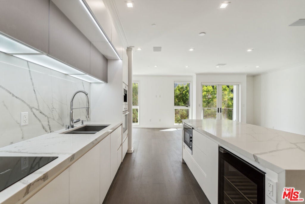 This elegant 2-bed, 2-bath residence is located in a sophisticated 4-story condominium building in one of Los Angeles' most sought-after neighborhoods. Perfectly positioned near upscale dining, entertainment, Cedars-Sinai Hospital, supermarkets, and shopping in both Beverly Hills and West Hollywood, this home offers convenience at its best. The open floor plan seamlessly connects the living room and kitchen, making it ideal for entertaining. The kitchen is equipped with custom Miele appliances, including a coffee system, wine cooler, and induction cooktop, to elevate your culinary experience. The spacious primary bedroom features a well-organized walk-in closet, while ample storage, floor-to-ceiling windows, and hardwood floors add to the luxurious feel of the home. Additionally, the property includes two reserved subterranean parking spaces.