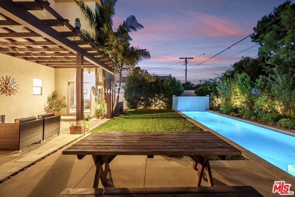 NEW PRICE! This home is the BEST VALUE you will find in Westchester! Located in the heart of Westchester's desirable Kentwood neighborhood, this beautifully designed 5-bedroom, 4-bathroom home offers over 3,200 square feet of bright, open living space perfect for entertaining. Step inside to soaring high ceilings, abundant natural light, and an ideal floor plan with multiple living areas. The living and dining rooms share a sleek gas fireplace, while the open-concept kitchen is a chef's dream complete with Thermador appliances, custom cabinetry, and a large island for casual dining. Just off the kitchen, a cozy den opens to the backyard, creating a seamless indoor-outdoor connection. A first-floor bedroom doubles perfectly as a home office or guest suite. Upstairs, the primary suite is a true retreat with a luxurious en-suite bath, walk-in closet, and private balcony facing West capturing perfect sunsets. All bedrooms are spacious, filled with natural light, and designed for relaxation including a second en-suite bedroom which features its own balcony. Outdoors, the setting is pure California luxury featuring a large stone patio with pergola and fireplace, sun decks, and a heated saltwater lap pool and jacuzzi. The outdoor kitchen makes hosting a breeze, and the travertine floors inside are ideal for indoor-outdoor living. Additional highlights include a 26-panel solar system (paid off), dual-zone HVAC, an Aquasana 3-stage whole-home water filtration system, Speed Queen washer and dryer (conveniently located on the 2nd floor) and a two-car garage with epoxy floors, custom cabinetry, and Siemens VersiCharge EV charger. Set in the welcoming community of Kentwood, this home offers the perfect blend of tranquility and convenience with nearby shops, restaurants, cafes, Trader Joe's and top-rated Kentwood Elementary just two blocks away. Also, minutes away is Westchester Park with its 18-hole golf course, pickleball courts and skate park. This truly is an ideal location with its close proximity to Playa Vista, Marina del Rey, Culver City, El Segundo, and Manhattan Beach, this home captures the very best of Westside living! 6411w85th.com
