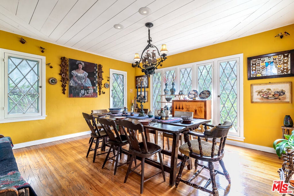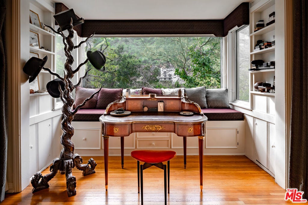Standing guard over a private enclave of Mt Olympus, this 1926 Spanish storybook should best be described as a romantic love affair with life. Born in an era when silents were turning into talkies, this is the home that will write your next chapter and allow your inspiration to flow."Rich with rockstar history and filled with classical elements like wood beamed cathedral ceilings, stained glass windows, a mantled fireplace, a fabulous octagon shaped library, lush greenery yards and outdoor dining areas with balconies on every level of the house.The family kitchen, made to inspire your culinary efforts, connects to a formal dining room with an ambiance to entertain, fulfilling every expectation of a perfect night at home with friends.Cross the lovers bridge and you know, you've found your place to come home to.