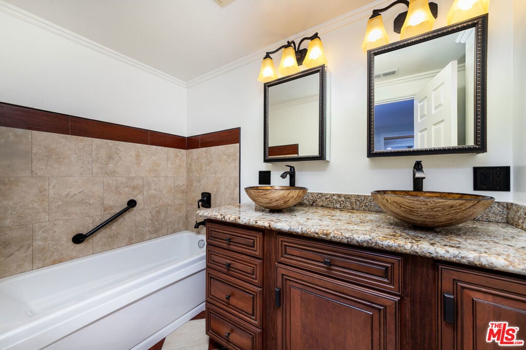 Located just below the legendary Sunset Strip in prime West Hollywood, this light-filled, move-in ready 2-bedroom, 2-bath condo at "Hilltop House" offers a spacious layout with over 1,200 sq. ft. in one of LA's most iconic neighborhoods. Just moments from the vibrant pulse of Sunset Boulevard, where renowned restaurants, boutiques, iconic hotels, social clubs, and Equinox await your exploration. The unit features wood floors, recessed lighting, crown molding, dual-pane windows, central heating and air, and a large south-facing balcony with access from both the living room and primary suite -perfect for enjoying morning coffee, winding down with a glass of wine, al fresco dining, or even creating an herb garden. The kitchen includes stainless steel appliances, a built-in microwave, farmhouse sink, solid wood custom cabinetry, glass tile backsplash, and a tankless water heater. The primary bathroom offers a spa tub, separate shower stall, and double sink bowls. Ample closet and storage space throughout. Additional highlights include two parking spaces, low HOA dues, and a controlled-access building with lush landscaping and a pool. One of the best buys in West Hollywood - don't miss this opportunity.