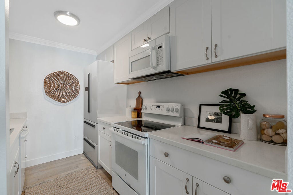 This Culver City condo offers incredible value and an unbeatable location near Culver City's vibrant restaurants, shops, and grocery stores. The 2-bedroom, 1bath home features a beautifully renovated kitchen that opens to the dining area, perfect for entertaining or channeling your inner chef. Enjoy an oversized balcony surrounded by lush greenery, creating a serene indoor-outdoor flow ideal for morning coffee or evening wine. Large living room windows fill the space with natural light, enhancing the warm and inviting atmosphere. The large primary bedroom has a generous walk in closet. Plus Landry in unit! The community offers an array of amenities with a reasonably priced HOA, including swimming pools, spas, tennis courts, and more. You'll never want to leave! New Laundry, Refrigerator and wall AC unit just newly installed! Building is FHA Approved.