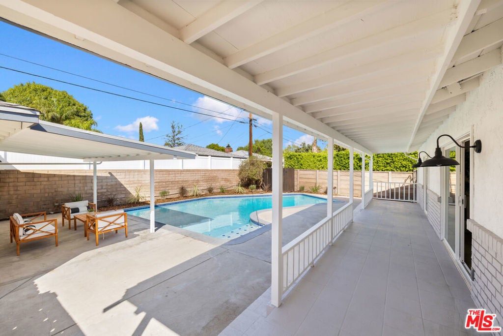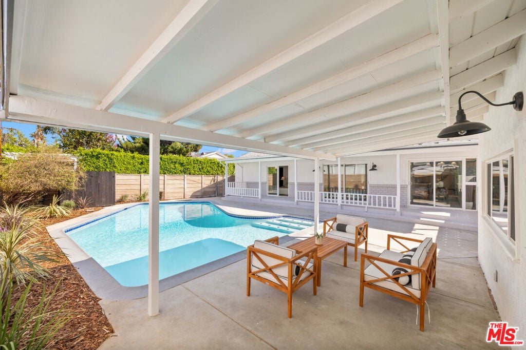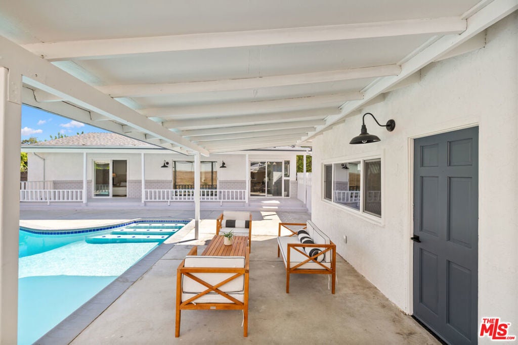 Situated on a quiet cul-de-sac in a desirable Granada Hills neighborhood, this beautifully updated pool home offers a refined blend of modern style, comfort, and versatility. Featuring three bedrooms and three upgraded bathrooms, the home showcases bright, open interiors with wide-plank flooring, fresh finishes, and abundant natural light throughout. The contemporary kitchen is designed for both everyday living and entertaining, highlighted by sleek cabinetry, premium countertops, modern lighting, and a seamless flow into the main living spaces. Each bathroom has been tastefully remodeled with designer tile, quality fixtures, and a clean, spa-inspired aesthetic. Sliding glass doors and generous glazing create an effortless indoor-outdoor connection, leading to a private backyard retreat complete with a sparkling pool and expansive patio ideal for relaxing, hosting, and enjoying Southern California living year-round. A large detached two-car garage adds exceptional flexibility and potential, whether envisioned as a pool house, creative studio, guest space, or possible ADU conversion (buyer to verify). Conveniently located near shopping, dining, and commuter routes, this move-in-ready home delivers style, function, and outdoor living in one of Granada Hills' most sought-after settings. THIS IS A MUST SEE!