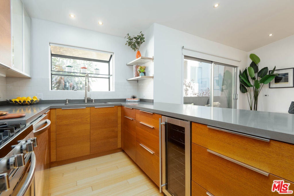 Fantastic Brentwood condo! This top floor 2 bedroom/2 bathroom condo is located in the heart of Brentwood. This unit which is flooded with natural light features a large open concept floor plan with a cook's kitchen, wood cabinetry, stainless steel appliances and gray quartz-like countertops. The unit also features vaulted ceilings, a newly refurbished bathroom, central heat and AC and a private patio. The complex features beautiful landscaping and a secured entry. The unit is located close to all the best shops and restaurants that Brentwood has to offer. Live your best Brentwood life in this unit!!