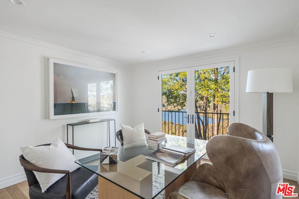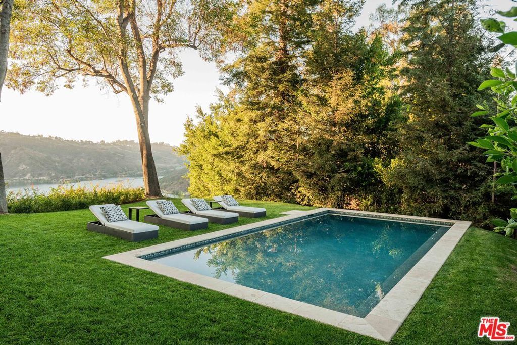 Stunning Contemporary Mediterranean home completely rebuilt and located behind gates on a private hillside in Bel Air. 1 of only 5 properties on Bel Air Road with unobstructed panoramic views of the Stone Canyon Reservoir and rolling hills beyond. Set on nearly half an acre, this home offers 6 bedrooms, 9 baths, a bright open floor plan with a warm minimalist aesthetic. Designed to capture the feeling of a European lakeside villa. A grand two-story entry opens to spacious living areas with White Oak herringbone floors and stunning water views. The gourmet kitchen features Thermador appliances, a La Cornue range, large island with breakfast nook and butler's pantry. Main rooms flow to a resort-style backyard with pool, spa, outdoor kitchen, dining areas and lush landscaping. The primary suite includes a private terrace, lounge, dual spa-like baths and walk-in closets. The lower level offers a wellness retreat with gym, cold plunge, steam shower and outdoor barrel sauna. Additional features include smart home systems, elevator, wine cellar, 100 ft gravel driveway with parking for over 10 cars. A private gated compound offering exceptional design, privacy and breathtaking views. Also available for sale.