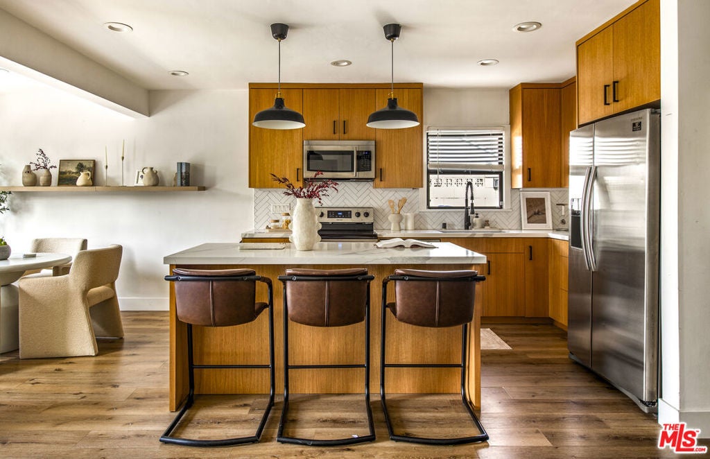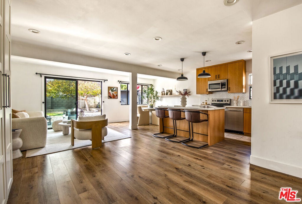 ACCEPTING BACK UP OFFERS! Nestled along a picturesque, tree-lined street, this elegantly updated residence offers three generous bedrooms and two beautifully finished bathrooms, blending contemporary sophistication with understated warmth. Remodeled within the past six years, the home showcases an expansive open-concept layout that enhances light, flow, and a sense of effortless refinement throughout the living spaces. The kitchen stands out as a fully custom showpiece, highlighted by bespoke cabinetry that adds both character and craftsmanship. Thoughtfully designed closets provide ample, well-organized storage, complementing the home's clean architectural lines and elevated finishes. A fully permitted, brand-new roof, paid-off solar panels, Tesla charger, and tankless water heater contribute to the property's sense of completeness and enduring quality. The backyard offers a generous amount of outdoor space, perfect for relaxation or refined entertaining. Distinctive, inviting, and impeccably maintained, this home embodies modern comfort with a luxurious touch.