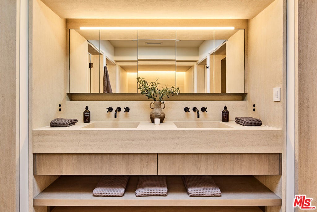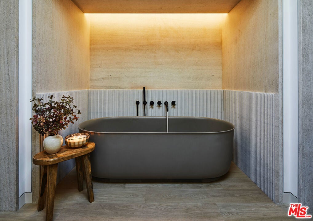 Tucked behind the guarded gates of the exclusive Malibu Colony, this reimagined mid-century modern masterpiece originally crafted by iconic architects Buff & Hensman embodies the essence of casual California living. Their signature blend of wood and glass architecture, which defined 1960s coastal style, lives on in this striking home, now thoughtfully elevated by award-winning architectural designer Warren Garrett. His vision honors the home's original design while introducing modern sophistication.Set beneath a canopy of mature sycamores, the residence is approached via a sandblasted limestone path that echoes the organic textures of the nearby shoreline. Inside, a dramatic open-concept layout unfolds across five bedrooms and five bathrooms, with soaring ceilings and a floating staircase wrapped in wide-plank white oak and framed by a floor-to-ceiling glass wall that invites in abundant natural light.The chef's kitchen is a sleek, functional centerpiece outfitted with Gaggenau appliances, minimalist cabinetry, and a spacious island perfect for culinary exploration or casual gatherings. Throughout, the home is outfitted with Universal Control4 automation and an integrated sound system, inside and out.The serene primary suite offers a private retreat, featuring a spa-inspired bathroom with honed limestone, white oak detailing, a hand-carved rigato stone bathing niche, private water closet, and dual custom closets. A secluded balcony reveals sweeping mountain and ocean views, creating a tranquil haven. Outdoor living is redefined in this secluded sanctuary, where a shimmering pool anchors the courtyard. The outdoor kitchen fully equipped with top-of-the-line appliances and generous seating sets the stage for unforgettable al fresco dining under the stars. Privately gated from the street with nearly 50 feet of frontage, this estate offers an unmatched sense of seclusion within the Colony. While just steps from your deeded, beautifully appointed beach access reserved for a select group of homeowners you can enjoy complete privacy and round-the-clock security. This rare offering captures the very best of Malibu Colony living: architectural significance, modern luxury, and the ultimate connection to land, sea, and sky.