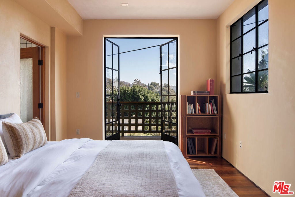 Set high in legendary Beachwood Canyon with absolutely breathtaking views, this Bauhaus Mediterranean, 4-bedroom, 3.5-bath residence is a true original. An effortless fusion of classic and contemporary design, it features one-foot-thick walls, steel-framed casement windows, and a sculptural interplay of mass and light. The result feels both grounded and ethereal-anchored in its hillside setting yet open to sweeping vistas beyond.Inside, sunlight pours through tall, multi-pane steel sash windows, illuminating hardwood floors, exposed beams, and softly curved walls. The living room centers on a fireplace, flowing into a formal dining area that opens to a chef's kitchen with soaring ceilings plus stainless-steel appliances. Throughout, handcrafted Moroccan-tiled baths and custom details bring a sense of artistry and texture.A one-of-one creation, the home was conceived by a fine arts painter and original designer whose work still graces the walls. The result is a living piece of art-expressive, soulful, and unmistakably individual. From nearly every room, views stretch past the glittering lights of downtown and the greenery of Griffith Park to the serene hillsides of Beachwood Canyon.Private and secluded yet open and light-filled, the home captures the duality that defines Los Angeles itself: artful, grounded, and effortlessly original. Just moments from Beachwood Village cafe's and Lake Hollywood's hidden trails and minutes from the heart of Hollywood and its studios-this residence stands as one of the canyon's most distinctive and inspired homes.