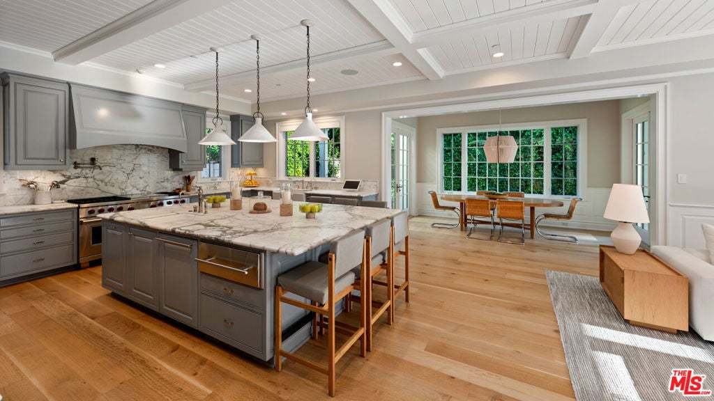 Tastefully appointed, newer construction East Coast Traditional, this private estate is designed with an emphasis on wellness, sustainability, and natural living. Immaculately maintained, sunlit interiors with soaring ceilings flow seamlessly to serene gardens and outdoor living spaces. Crafted with non-toxic hardwood floors, VOC-free paints, and a state-of-the-art PureAir filtration system with built-in HEPA filters, the home was thoughtfully built to support a healthy lifestyle. Outdoors, a flourishing organic chef's garden produces a wide variety of fruits and vegetables, complemented by citrus trees and a chicken coop, creating a true farm-to-table experience at home. Additional highlights include a gym, theater, bar, elevator, Crestron smart home system, whole house water filtration system, dual gated driveways, and a three-car garageall providing comfort, convenience, and privacy. Additional details and information provided upon request.