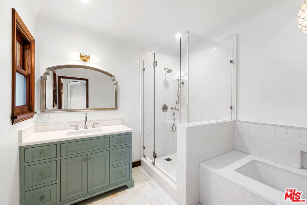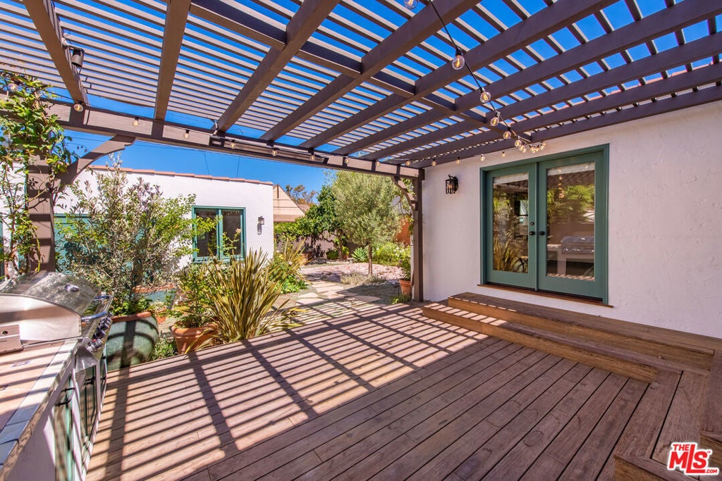 Tucked along a charming walk street in the heart of Carthay Square HPOZ, this beautifully maintained Spanish eclectic home immediately feels warm & welcoming from the moment you arrive. Step through the front door into a bright & inviting living room, where beautiful hardwood floors & a large windows fill the space with natural light. The flow continues seamlessly into the dining area & on to the kitchen, which truly is a standout. Thoughtfully designed and exceptionally well appointed, the kitchen features high-end appliances, generous counter space, and a layout that works just as well for everyday living as it does for entertaining. The bedroom spaces are all generously sized, starting with the primary suite, which feels calm & private. The hotel-style en-suite bathroom offers modern finishes & a beautiful walk-in, glass-enclosed shower, creating a relaxing retreat at the end of the day. Two additional guest bedrooms provide wonderful accommodations for family or friends & offer flexibility for a home office or creative space if needed. Outdoors, the property is beautifully landscaped and exceptionally usable. Fruit trees, tasteful paving, & a thoughtfully designed layout create an ideal setting for both quiet mornings & lively gatherings. The outdoor barbecue area is perfect for dining & entertaining. Adding even more versatility is the detached casita, a fantastic bonus space that works perfectly as a home office, guest suite, or creative studio. It includes its own kitchenette, full bathroom, & wall-air/heat, making it comfortable & functional year-round. The home also offers on-site parking, along with ample street parking nearby. Altogether, this is a truly special property warm, inviting, and thoughtfully laid out...a place that feels like home the moment you walk in.