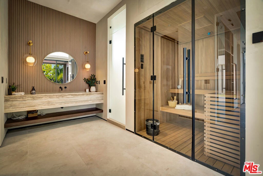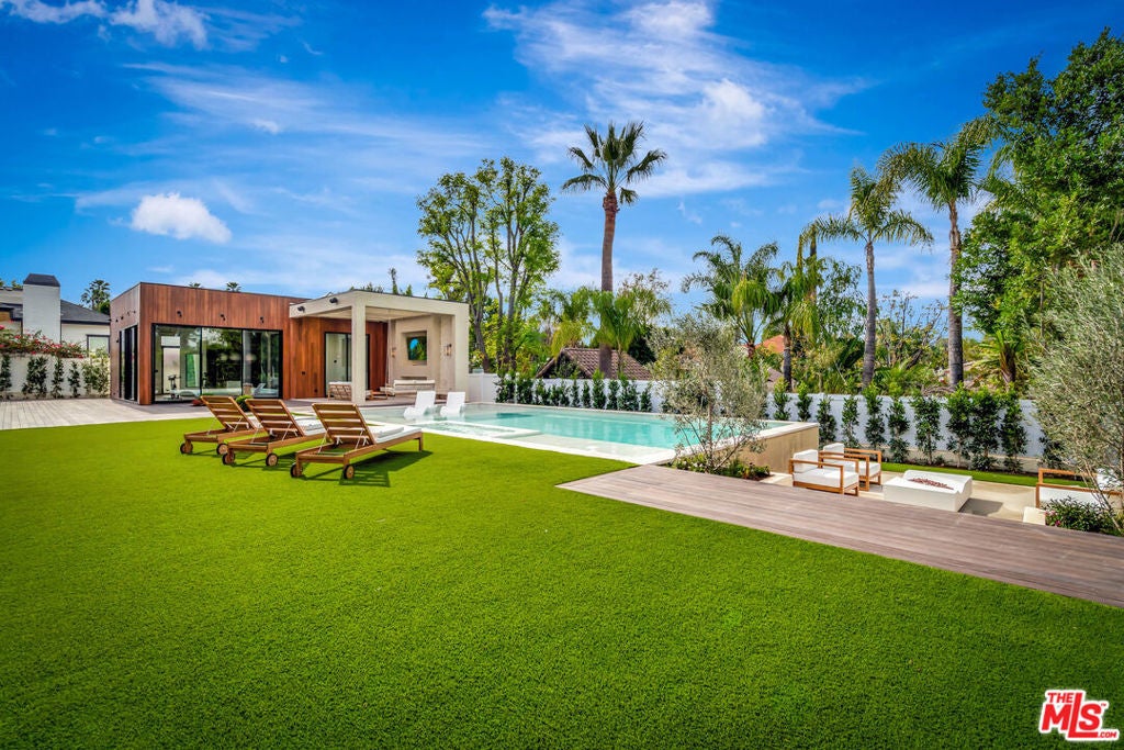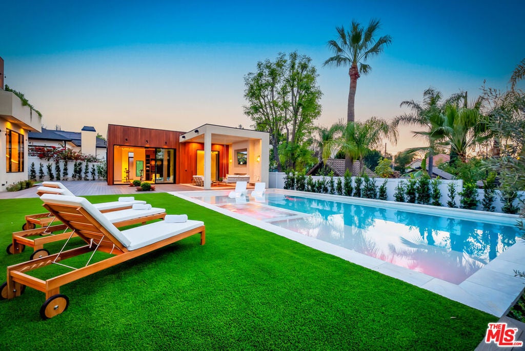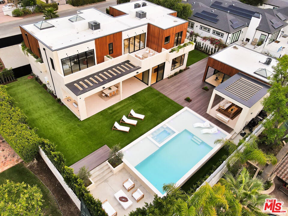 This gated South of the Boulevard property showcases a seamless blend of sophisticated design, cutting-edge technology, and resort-style living. The 5-bedroom, 5.5-bath main residence is thoughtfully designed and includes a private office and state-of-the-art theater room, offering versatility for work, entertainment, and everyday comfort. The open-concept layout is anchored by dramatic plaster walls, curated finishes, and an abundance of natural light, creating a refined yet inviting atmosphere. Designed for elevated entertaining, the home features a chef-caliber kitchen with premium appliances, custom cabinetry, and an expansive island, complemented by a secondary prep/dirty kitchen ideal for hosting on any scale. Effortless modern living is enhanced by a Control4 (C4) smart-home system, providing intuitive control over lighting, climate, audio, and security. Expansive living and dining spaces open directly to the outdoors, delivering a true indoor-outdoor flow perfect for year-round entertaining. Lush landscaping with over 200 mature trees, offering exceptional privacy and a true sense of seclusion. Beyond the main residence, a fully detached 1-bedroom, 1-bath ADU has been transformed into a private wellness retreat, complete with a sauna, jacuzzi, and gym offering a spa-like experience at home or an exceptional guest accommodation. The resort-inspired backyard is designed for both relaxation and entertaining, featuring a sparkling pool with Baja shelf, spa, built-in BBQ, and two separate patio areas, providing multiple spaces to lounge, dine, and gather. Every element of this property has been carefully curated to deliver luxury, functionality, and privacy in one of the most sought-after locations South of the Boulevard.