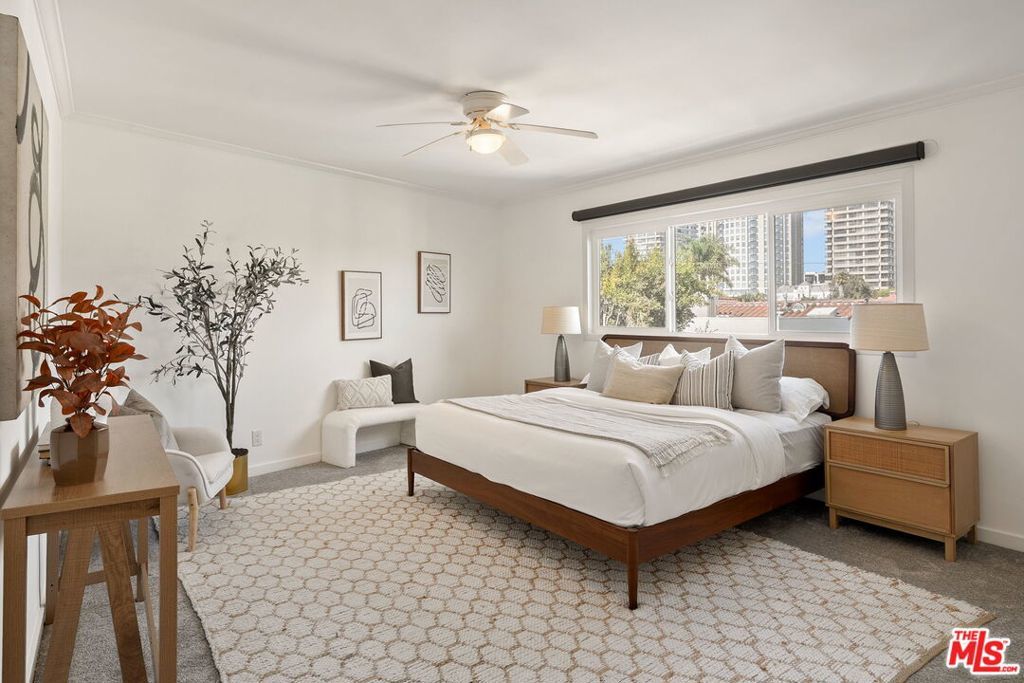 Sun-drenched top-floor penthouse in the heart of Westwood, offering privacy, space, and exceptional natural light. This quiet 3-bedroom, 2-bath residence features an expansive open layout where the kitchen, dining, and living areas flow effortlessly togetherideal for both relaxed living and entertaining. Rich wood floors anchor the main living spaces, while an impressive wall of windows in the great room bathes the home in sunlight and frames picturesque neighborhood and city views. The kitchen is clean with stainless steel appliances and a newly installed cooktop. The primary suite is a true retreat, highlighted by a beautifully renovated, spa-inspired bathroom and ample closet space. Two additional generously sized bedrooms are served by an upgraded hall bath, offering comfort and flexibility for guests, family, or a home office. Additional features include two dedicated parking spaces and gym in building. Ideally situated near Westwood Village, UCLA, Century City, Westfield Century City Mall, popular dining, coffee shops, shopping, and major freeways, this penthouse delivers the best of Westside living. A rare opportunity not to be missed.