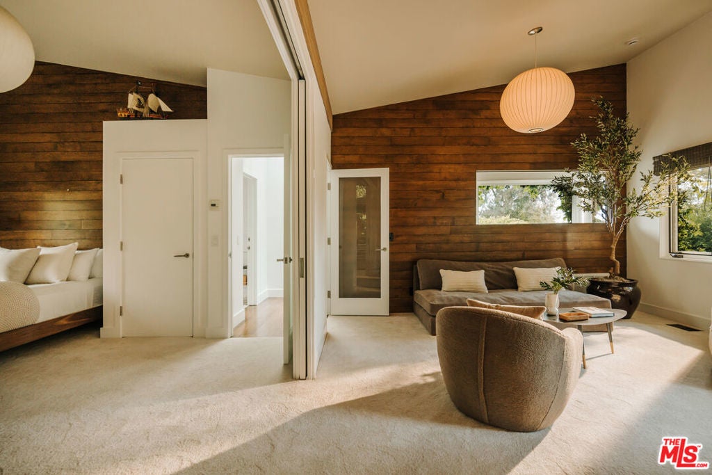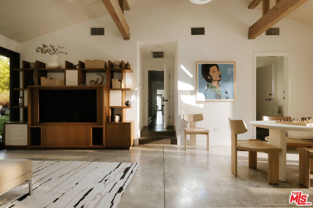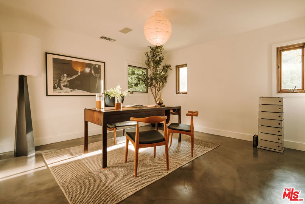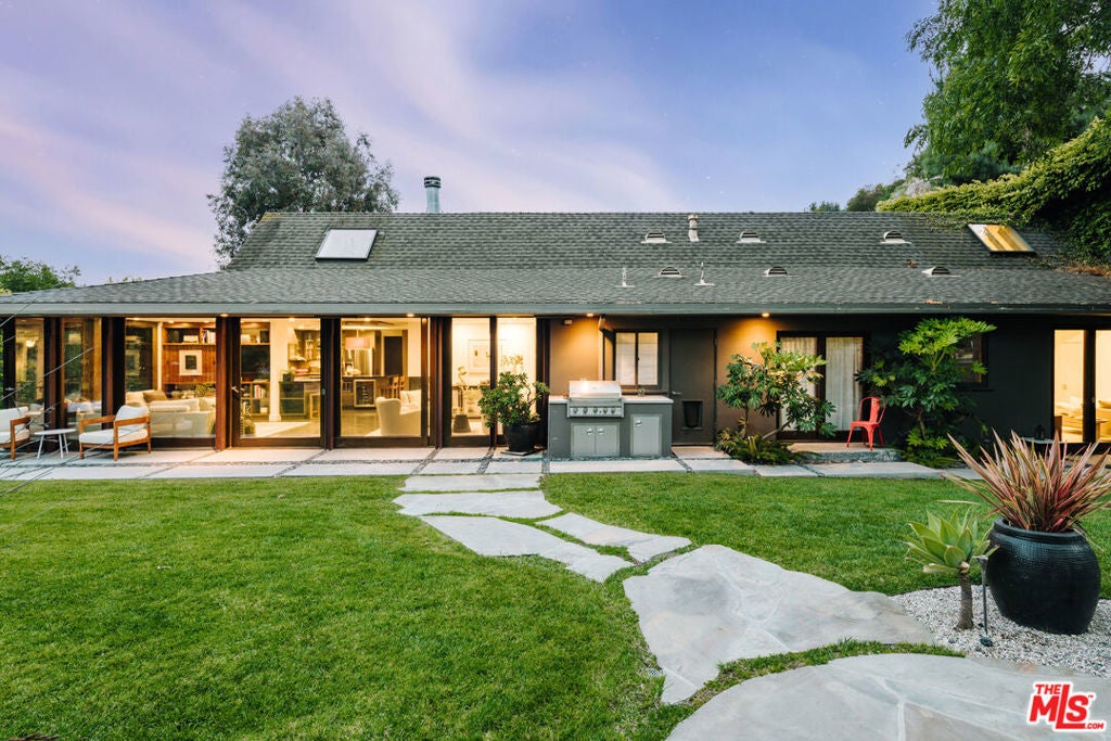 2220 Banyan Drive is a 5-bedroom, 4.5-bathroom residence spanning 4,107 square feet, seamlessly blending elevated design with everyday livability. Set behind a lush, landscaped entry courtyard with a peaceful fountain and generous grassy lawn, the home immediately sets a tone of serenity and sophistication. Through double front doors, a sun-drenched sitting room introduces the home's refined material palette; a striking mix of polished cement and warm wood that adds texture, depth, and architectural character throughout. To the right, sets a private room perfect for your at home work space or guest quarters. Adjacent is the spacious primary suite, where awe-inspiring canyon and city vistas greet you each morning. Anchored by a sleek fireplace, the primary bedroom also features a custom closet and a dramatic cement accent bathroom surrounded by bamboo, creating a retreat that feels both luxurious and grounded. The heart of the home unfolds around expansive living areas that feel both welcoming and cozy due to the unique placement of the 180 degree fireplace. A charming breakfast area offers a casual contrast to the more formal, intimate dining room, both thoughtfully positioned off the custom kitchen for ease and flow. The dining room is positioned with sliding doors to the breathtaking canyon views creating a truly special dining experience. The dual living room is framed by large glass, sliding doors that open seamlessly to a flat, grassy yard, resort-style pool, firepit, custom overhand deck and sweeping canyon/city views; ideal for entertaining or quiet evenings under the stars. In the west wing, two en-suite bedrooms sit parallel, ideal for siblings, with a nearby flex space that functions beautifully as a playroom, studio, or media lounge. Beyond, is a loft-style bonus area offering generous space for teens, in-laws, an office or visiting family, completing the home's highly functional and versatile layout. The loft features its own bathroom, outdoor deck and has both a living room and bedroom. With its rare combination of panoramic views, a spacious flat yard, and richly layered design, 2220 Banyan is a truly special offering in the hills - where form, function, and natural beauty meet.