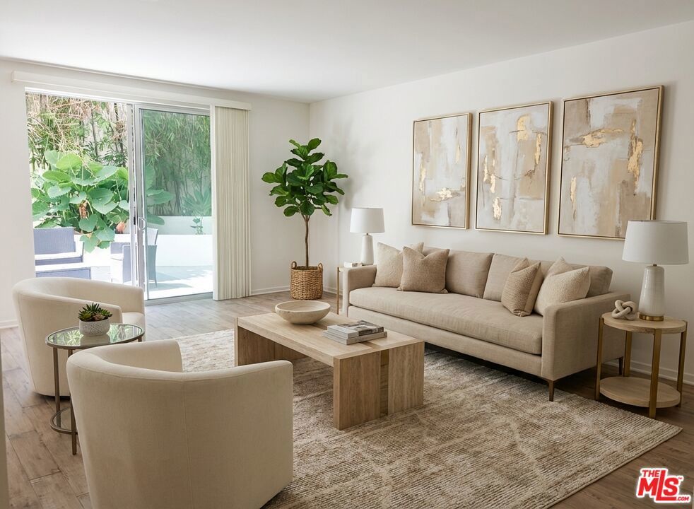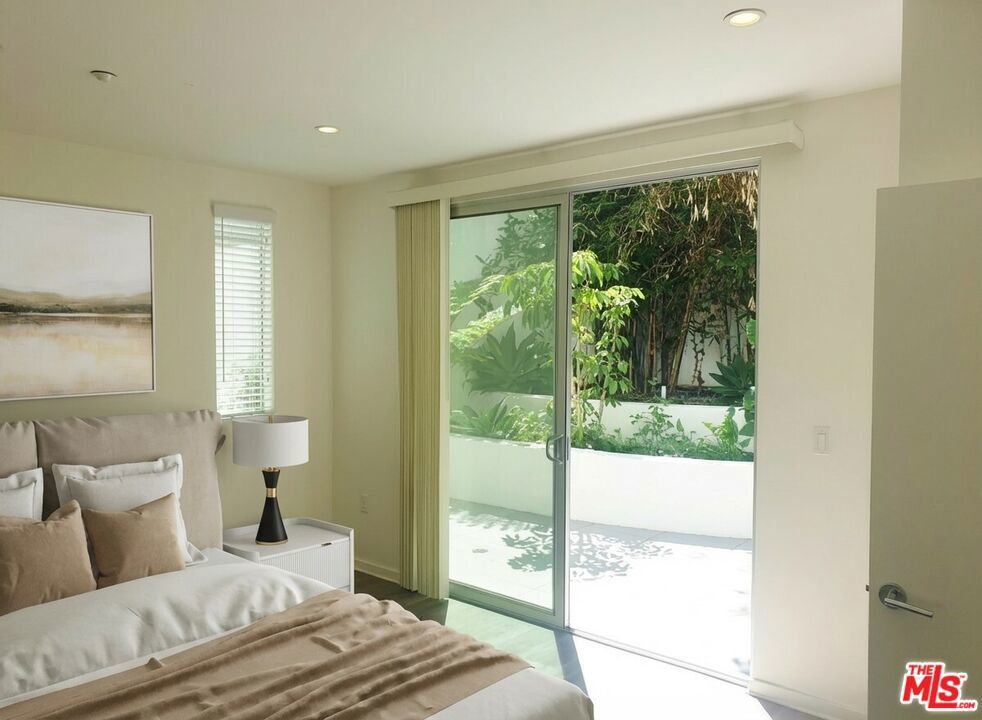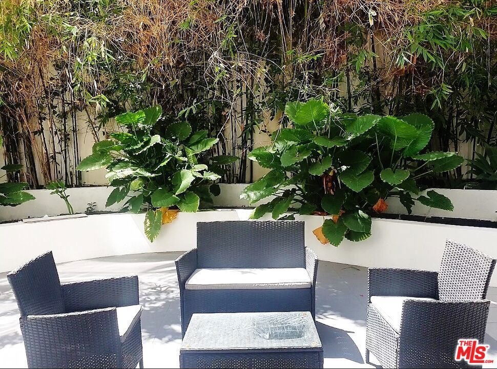 Newly Reduced! Modern and sophisticated 2-Br 2-Bath single-level unit with a Huge Patio area. This hard-to-find unit has sliding doors out from the living room to a beautiful tree-filled patio area for wonderful indoor-outdoor living. The unit features wood and tile floors (no carpet), high ceilings, central A/C and heat, and a washer and dryer inside the unit. The European-style kitchen includes a stainless steel refrigerator, dishwasher, gas range/oven and microwave. The open floor plan is great for entertaining. Primary bedroom suite has wood floors, high ceilings, double-pane windows. Modern en-suite bathroom with oversized walk-in shower and double vanities. Second bedroom has wood floors and recessed lights. Full second bath with large bathtub. Rent includes 2-car parking in the gated garage, water, trash and sewer. Electric car chargers at your parking space. Building has an elevator, controlled access lobby, and rooftop deck with views. Avail now for 1 year or longer. Near UCLA, Century City Mall, Westwood, Beverly Hills and the 405.