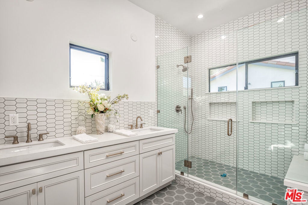 Designer Spanish home showcasing arched ceilings, rounded edges, and a sun-filled open floor plan. The spacious chef's kitchen and arched family-room window invite seamless indoor/outdoor living. Includes a fully-permitted ADU with full kitchen, bath, and private entrance, perfect for:* Remote professionals needing a dedicated office or gym* Families seeking a private in-law or guest suite* Buyers wanting a mortgage-offset rental or income opportunity. Located in Brookside, Mid-City Los Angeles, on one of the area's most quiet, tree-lined streets, just moments from new Metro/Subway stations. The property is fully hedged and gated with elegant curb appeal. Features four en-suite bedrooms plus a powder room, ample storage, smart-home lighting, high-speed Wi-Fi wiring, remote shades, and built-in surround sound. The private backyard opens to a large ADU, ideal for flexible living, work, guests, or rental income. Steps to the historic library and playground, and only 10 minutes to Larchmont Village's restaurants, shops, and gourmet markets. Stylish, versatile, and move-in ready, this Brookside gem offers modern flexibility with timeless Spanish charm. MUST SEE.