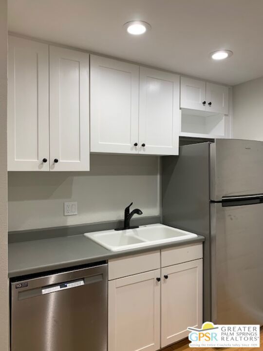 Re-modeled light filled 2nd story end unit In Palm Desert Country Club Villas. Light and bright unit with open concept layout. Decorator selected paint scheme, new kitchen appliances, new contemporary black hardware and new bathroom. Spacious in unit laundry/utility room. This community is beautifully maintained and offers covered parking. Located just off Washington with easy access to all that the desert has to offer. A must see property for those wanting a ready to move in condo.