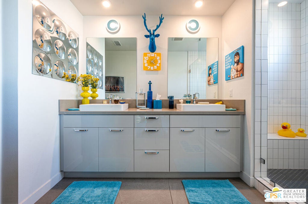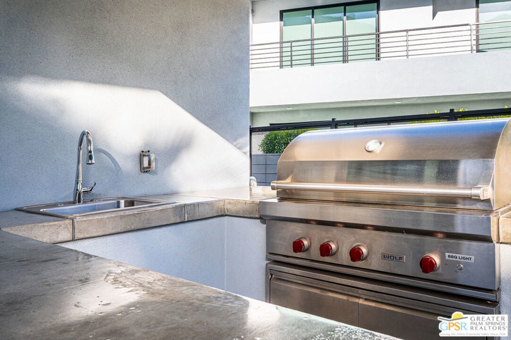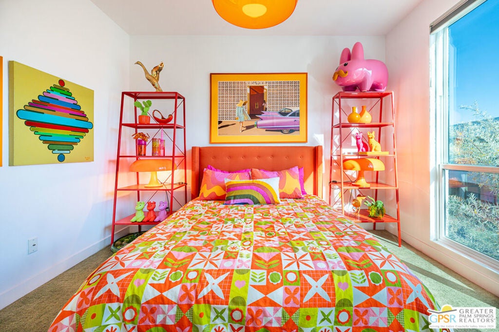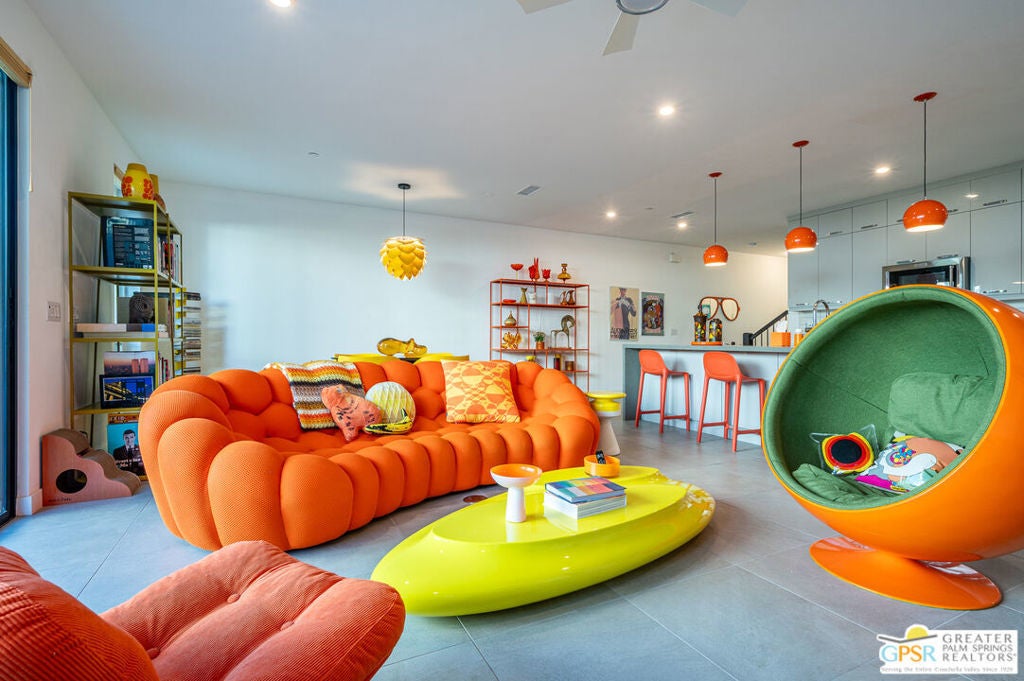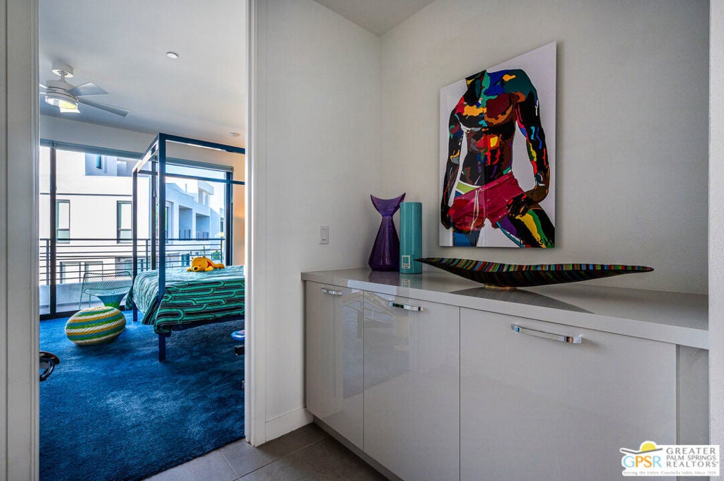 274 Mayfair is located within the Toll Brothers built, gated community of Cody Place. This 2237 square foot "Cameo Elite" plan home has a generous open kitchen with living and dining in one great space. The living room's stacking 3 panel 8' x 12' sliding door opens to a saltwater private "spool" cocktail pool with a lounging shelf and jets and a fire feature, all in a private gated yard. The kitchen has upgraded cabinets featuring a second row of upper cabinets to the ceiling, and pull-out spice racks on either side of the Kitchen Aid gas range. The 12 ft by 4 ft island has a deep stainless sink and a Kitchen Aid stainless dishwasher. The Samsung Bespoke refrigerator has color panels that can be updated to match your decor but currently harmonize with the pendants and chandelier in the open concept living/dining space. On the second level, up a grand carpeted staircase, lies a bright sun-filled loft office/den space with a 12 ft ceiling and adjacent balcony. A guest bedroom is next to the loft with an adjacent full bathroom with a walk-in, tiled shower, and the laundry room with stacked LG washer and drier. Around the stairwell through a vestibule with storage cabinets, is the roomy primary bedroom with another bright and beautiful 8' by 12' 3 panel sliding door that flanks another balcony that looks down to the private pool and yard, but also has views to the clubhouse, outdoor community grill, and turquoise shared pools and large hot tub. Up the next flight of stairs with its clerestory windows creating a sunny atrium, a single lite door leads to the "elite" third floor outdoor entertaining room, covered to shield from the elements but open to the north with mountain and community views. This space invites indoor/outdoor living in the fall, winter and spring months, complete with its own ceiling fan. The space could be used for outdoor TV watching and has a hose bib for potentially cultivating lots of potted plants. The sky's the limit! The townhome also features a two car garage with ample storage and a frosted glass garage door, and a powder room and additional storage tucked behind the kitchen. Cody Place sits conveniently on Palm Canyon Drive and is a short distance to downtown, and the bend district's restaurants and shops. The new CV link biking and walking path lies just north of the community. Honey, stop the search! You've found 274 Mayfair!