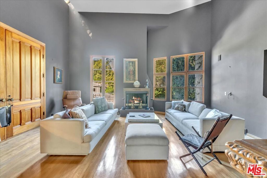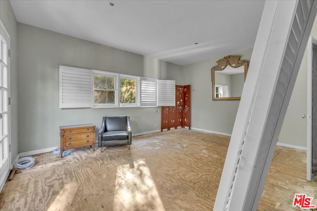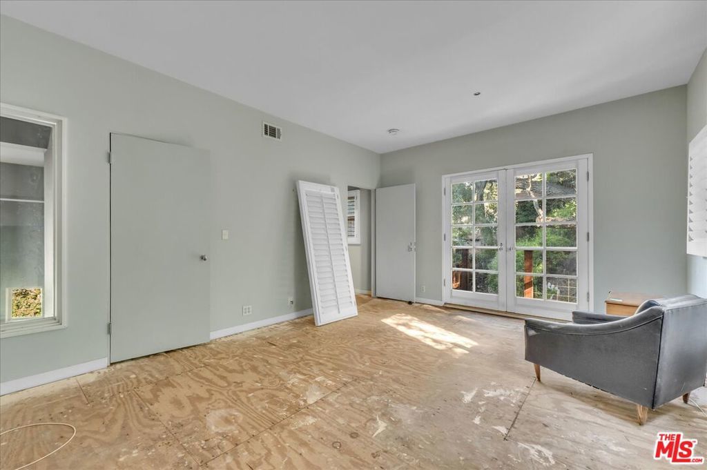 All Cash Buyers only. Magical architectural in prime Beverly Hills Post Office on a quiet cul-de-sac. Seller started a remodel and didn't finish so opportunity knocks to create a dream property with pastoral treetop and mountain views set on a country lane. Rare and excellent off street parking for multiple cars. A grand and true great room with soaring ceilings anchored by a fireplace opens to a formal dining/family room adjacent to the former kitchen which has been removed. The low maintenance rear patio invites outdoor living and dining experiences. A mid-level suite has an en suite bath with verdant views. The expansive "penthouse" style primary suite has an additional fireplace, sitting room and antique french doors with treetop vistas. Exceptional volume throughout, abundant art walls and multiple windows bring in natural light throughout the home. A separate rooftop deck is perfect for morning meditation or an alfresco workout terrace. The third car garage has been converted to a work/storage room with an adjacent bath with potential for a future ADU or flex space. Property is a Trust sale sold in its current as-is/where-is condition. Property is a fixer with limitless potential for the next lucky owner. Shown by appt only. No open houses.