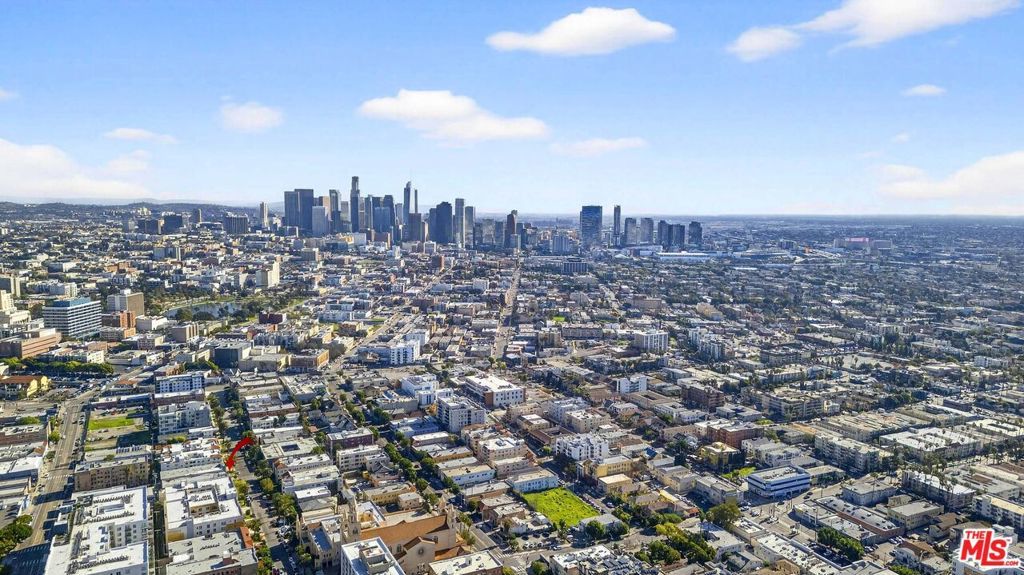 Welcome to this spacious east-facing unit with a fantastic floor plan in prime MacArthur Park with views of treetops, twinkling city lights, and the iconic skyline of Downtown Los Angeles. A smartly designed kitchen includes an abundance of cabinetry, center island with breakfast bar ledge, and stainless-steel appliances. Wood floors flow into the living room, complete with picture window framing views of rooftops, palms, and high rises. The primary bedroom is spacious, and its bathroom is stylish and bright with a dual-sink vanity, separate soaking tub, and oversized glass-enclosed shower. There is also a walk-in closet. The secondary bathroom includes an extra-large shower and vanity with smart mirror. In-unit laundry is stackable. Building amenities include a courtyard, sizable gym, and a rec room with bar, gaming tables, pool table/billiards, and lounge. The subterranean parking garage is equipped with bike racks and a smart hot food vending machine. HOA is very low for the building relative to similar properties in the area. Welcome to this central location amidst Korea Town's thriving late-night social scene, close to Hollywood, DTLA, major freeways, cafes, and more! For sunny afternoons and weekend picnics, MacArthur Park is also just a few short blocks away. Some photos are virtually staged.