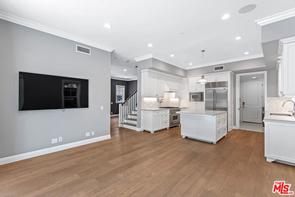 Now available for lease in a prime West LA location within a coveted gated community! This gorgeous home boasts a sophisticated open floor plan, allowing for a seamless flow through all spaces. The interior is beautifully accented by sleek wide-plank hardwood floors and oversized windows overlooking the green surroundings. The stunning chef's kitchen is top-of-the-line, featuring Viking and SubZero appliances, a center island, ample cabinetry, and a stylish tile backsplash. When you are ready to unwind, the second level welcomes you with four well-appointed bedrooms. The sumptuous primary suite includes French doors to a private balcony and an en suite bath with a soaker tub, oversized glass shower, vanity, and walk-in closet. Additional amenities include a fireplace in the main living area, a laundry room, a garage with electric charging, a generous backyard, and so much more. Move in today and embrace the opportunity to live in one of Los Angeles's most sought-after neighborhoods.